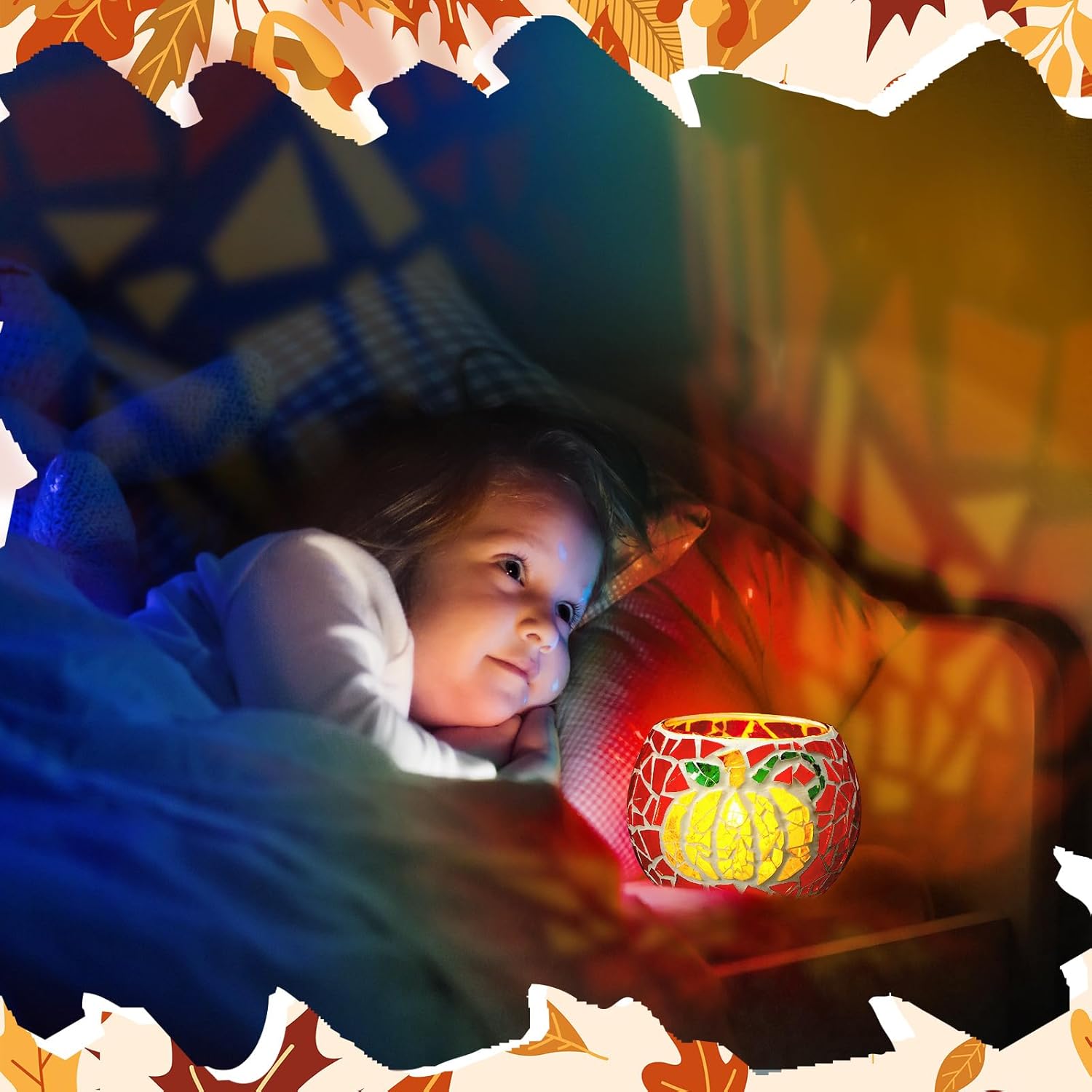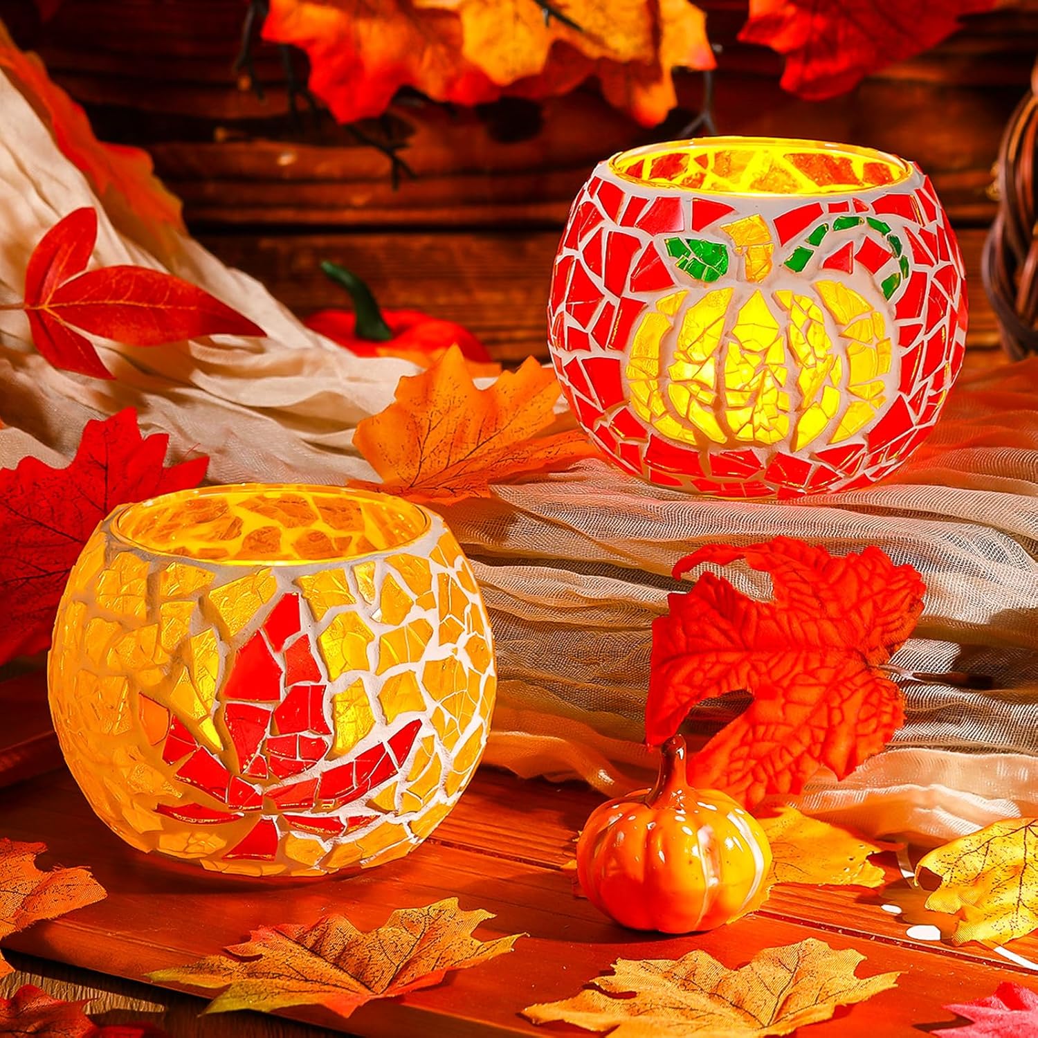 2 Set Glass Mosaic Candle Holder Kit Include Tea Light Holder, Glass Mosaic Tiles DIY Crafts Creativity Handmade Artwork for Adults Home Lighting Decor(Autumn Theme)