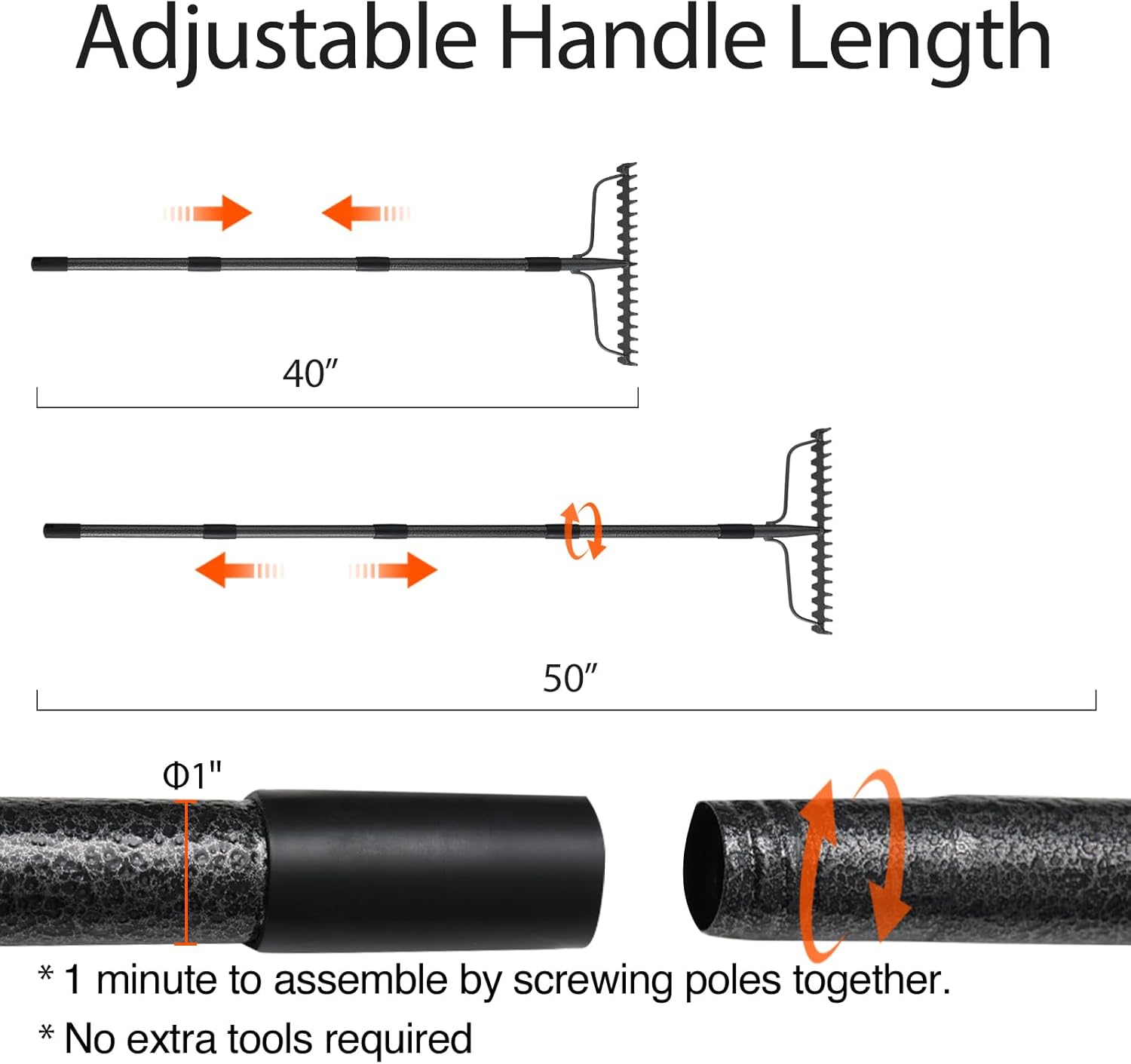 - Adjustable yard rake handle provides maximum comfort for either tall gardeners or kids rake and protect you from bending over.