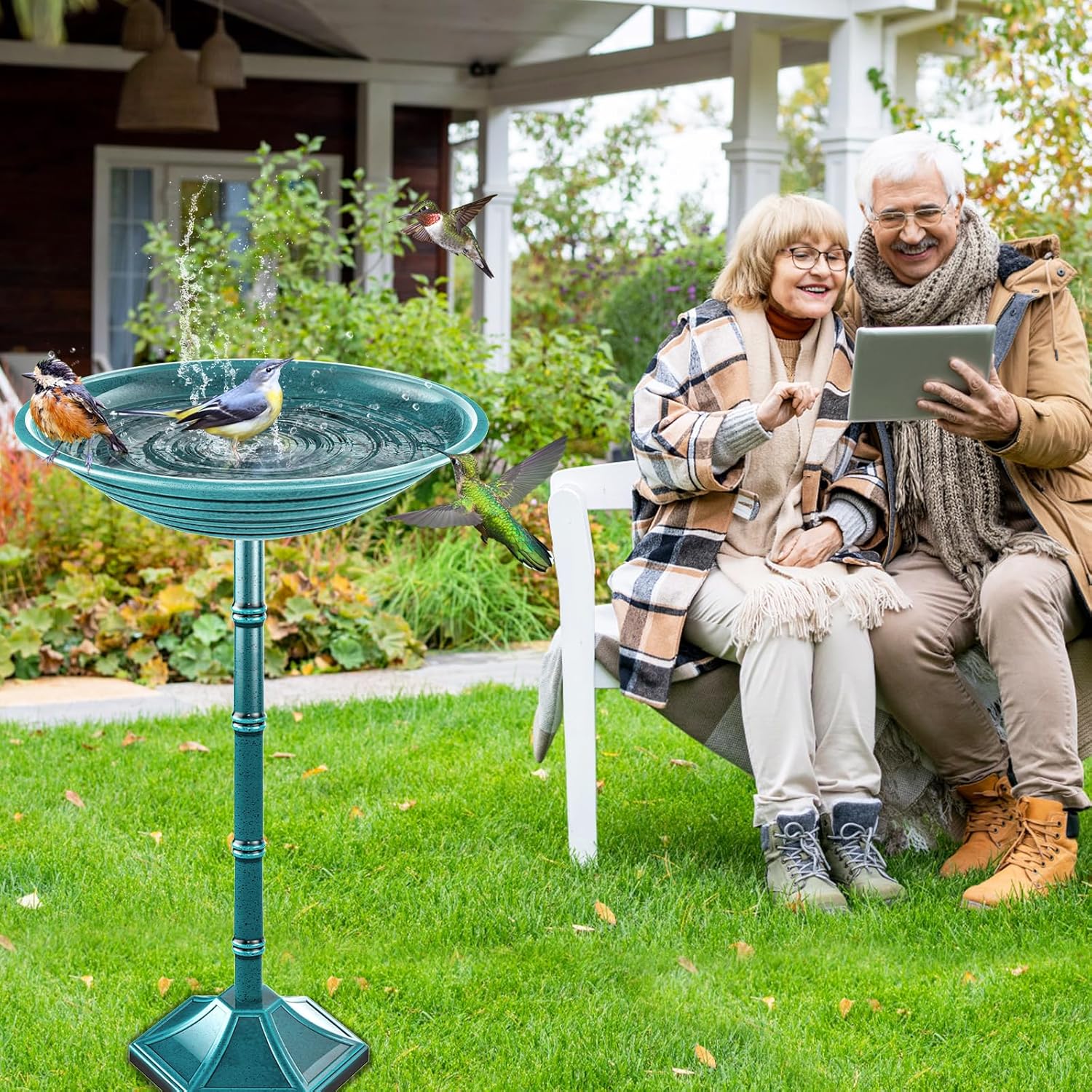 Bird Bath for Outside with Pedestal, Vintage Freestanding Garden Metal Birdbaths & Birdfeeder, Birdbaths Bowl Bird Baths for Outdoors Yard Garden Lawn Decor (Green)