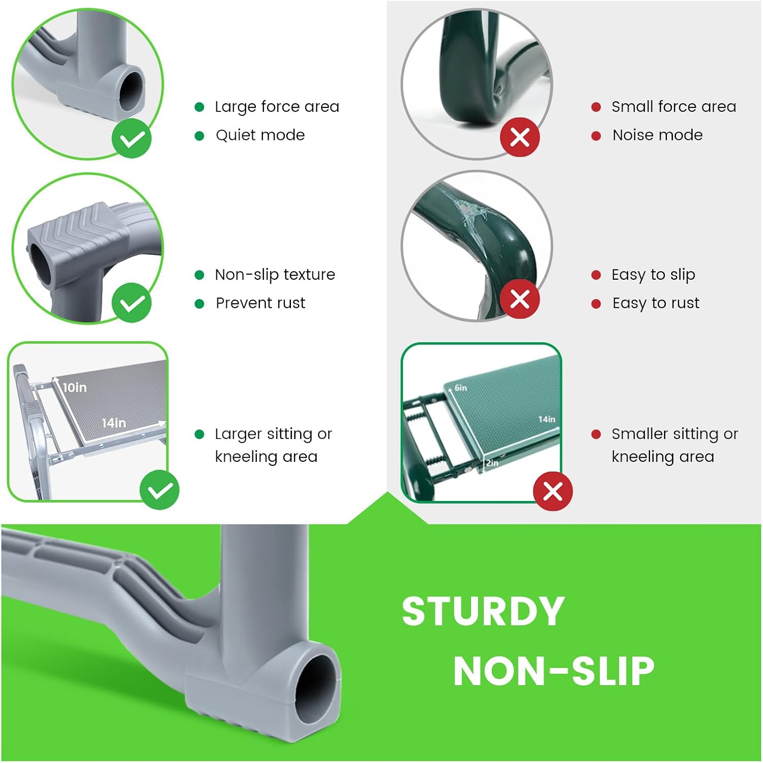 - ăUpgrade Widened StoolăThe Garden Kneeler is widened to 10 inches to fit most person and provide the best support and protection for your knees and waist.