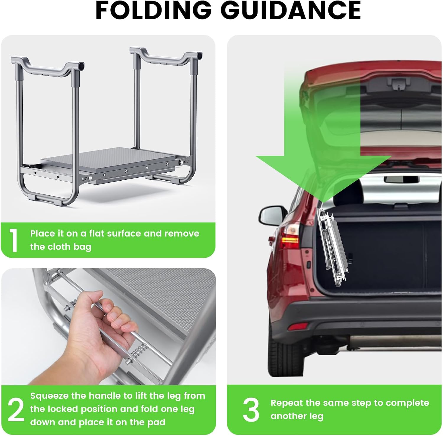 - ăLight & Durable & Came AssembledăCompared to the standard 10X5 inches, our seats are 14X10 inches wide with a unique upgraded widened Thick kneeling pad! This Garden Kneeler and Seat folds up easily and Compactly thanks to a quick folding mechanism,Easy to carry and storage, the seat can hold up to 350lbs.