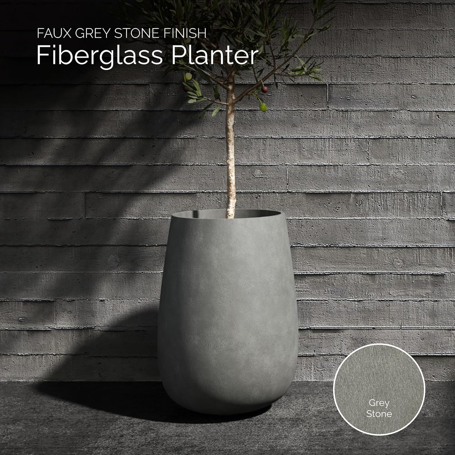 Mondo High Tall Planter – Grey Stone Finish – Fiberglass Indoor/Outdoor and Weather-Resistant Round Planter (17.7" D x 30.9" H Exterior, 16.5" D x 30.7" H Interior)