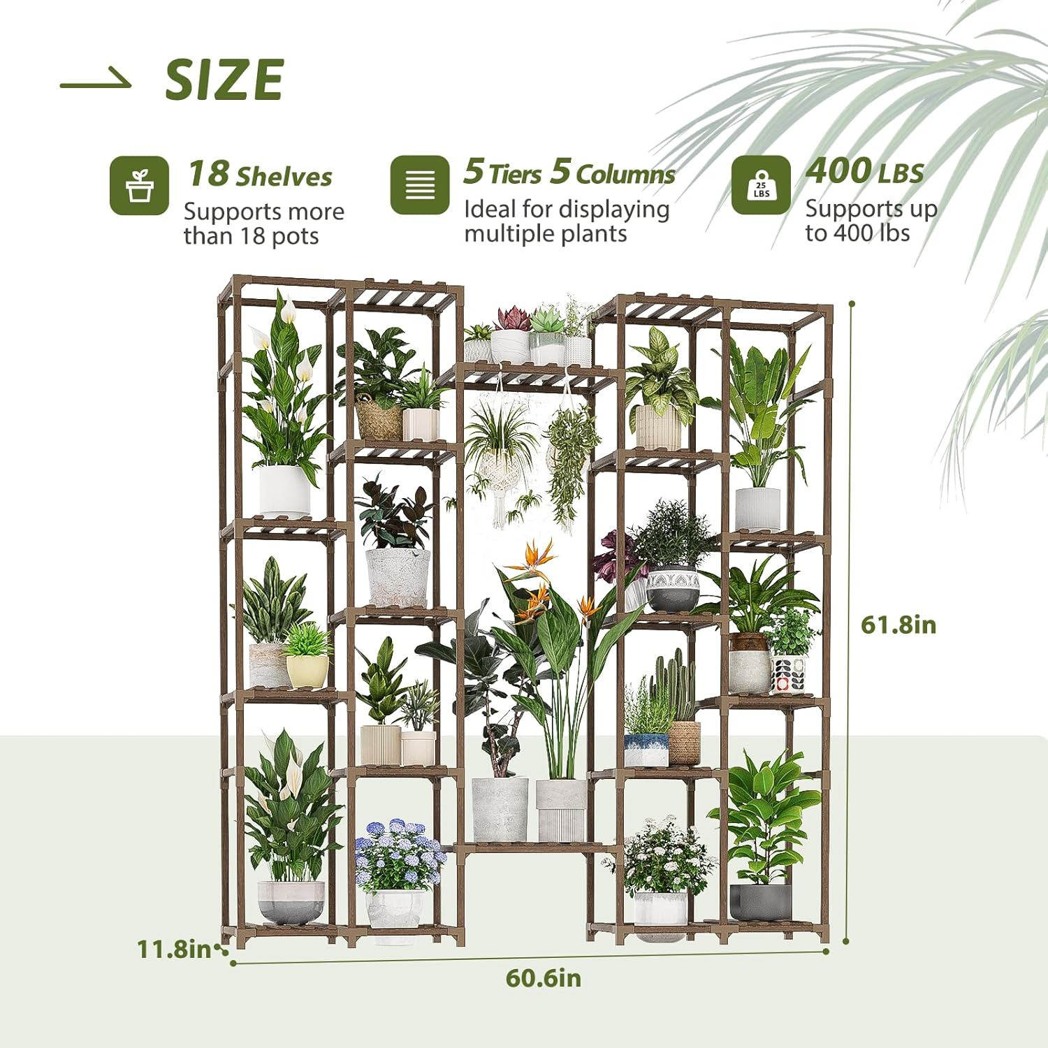 Plant Stand Indoor Tall Hanging Plant Shelf 16 Tiers Large Outdoor Plant Rack for Multiple Plants Wood Plant Holder for Living Room Garden Balcony