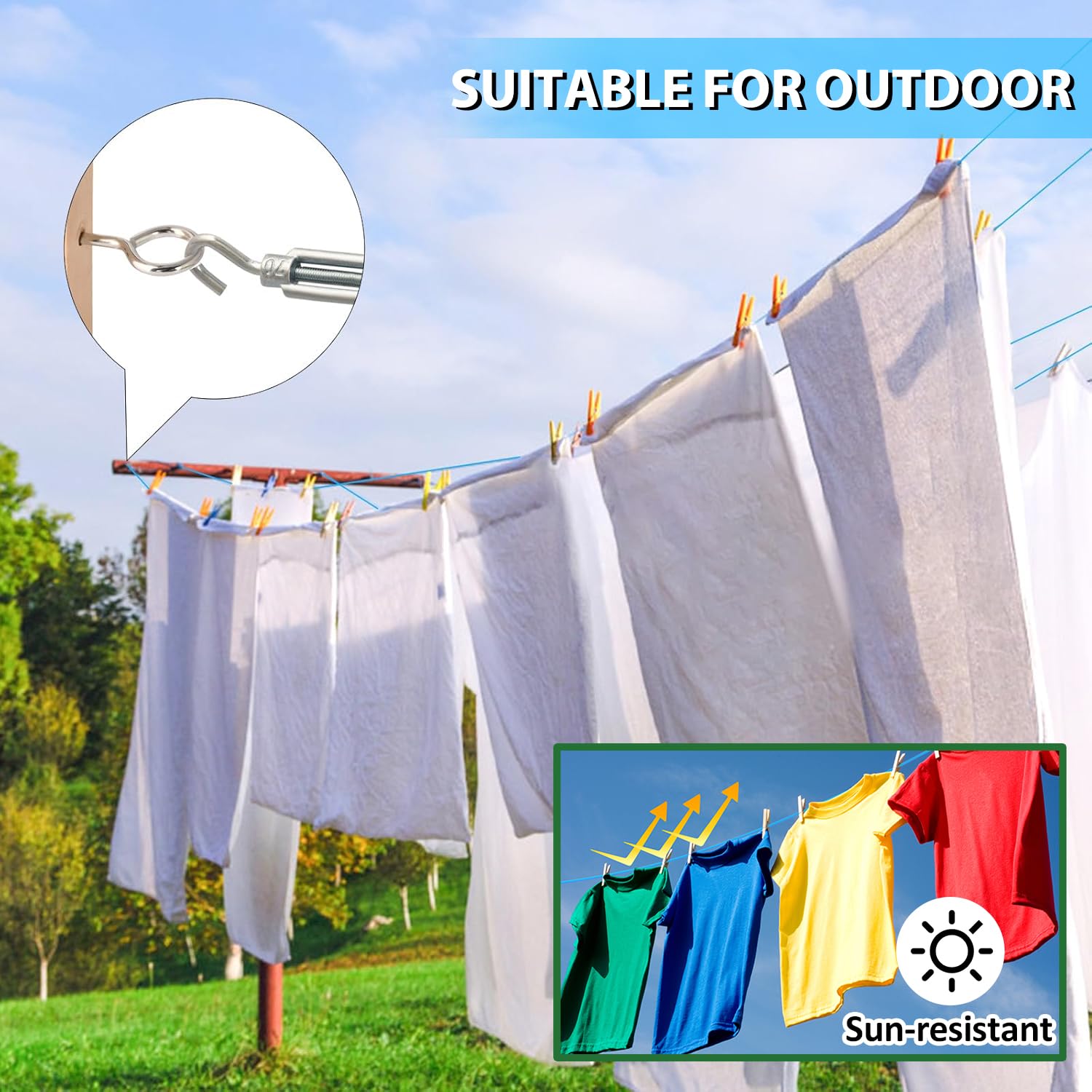 - PVC Coated Design: This core is coated in a heavy protective plastic allowing for resistance to harsh weather elements which means that you can easily use as clothesline outside without any worries. And the smooth PVC surface wipes clean within seconds