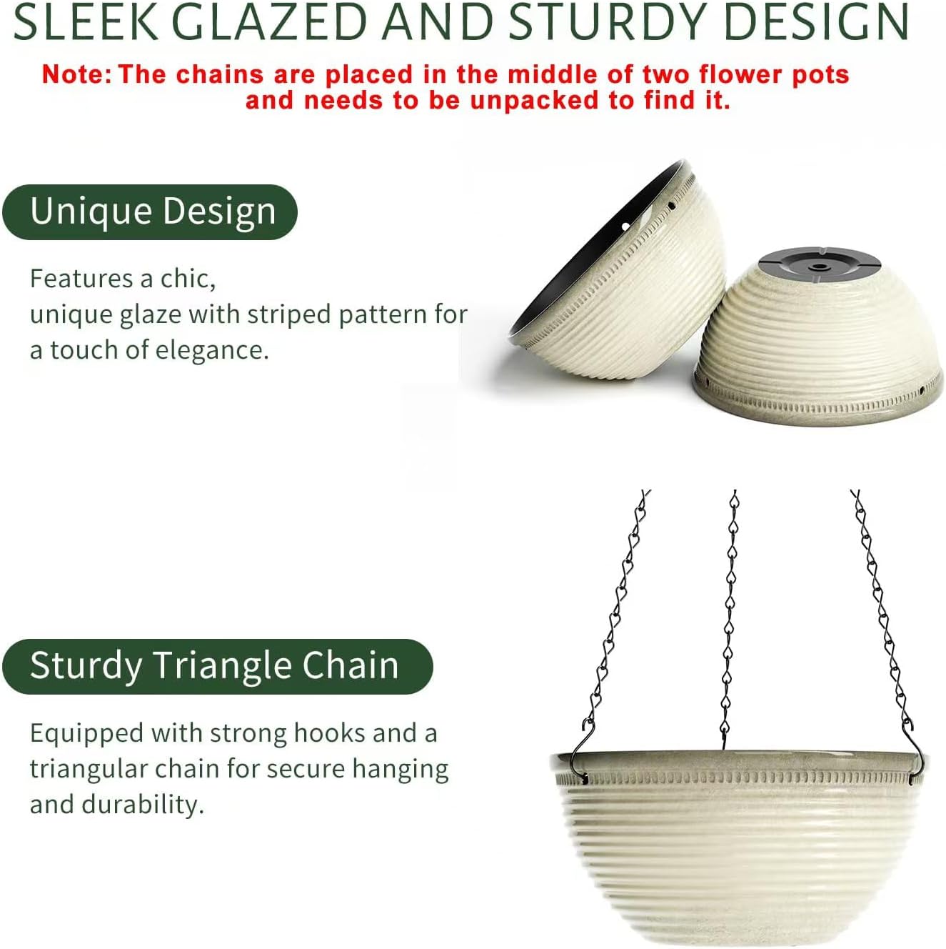 - Stylish Glazed Design: Hanging planter made from sturdy plastic with a glazed finish, this 10 inch hanging pot offers a sleek, modern look that complements any décor. Perfect for both indoor and outdoor use.
