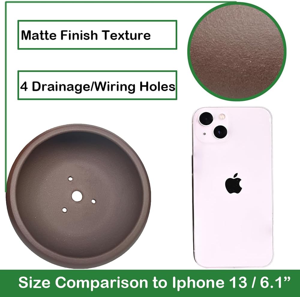 - 2, SIZE: Outer Size: D*H:5.3*2.2” , Inner Size: 4.5*1.85”, Suitable for Small Bonsai Tree Starter Transplanted ,Such as Mini Jade bonsai Pots, Small African violets/juniper/ pine tree/zebra plant Pots.