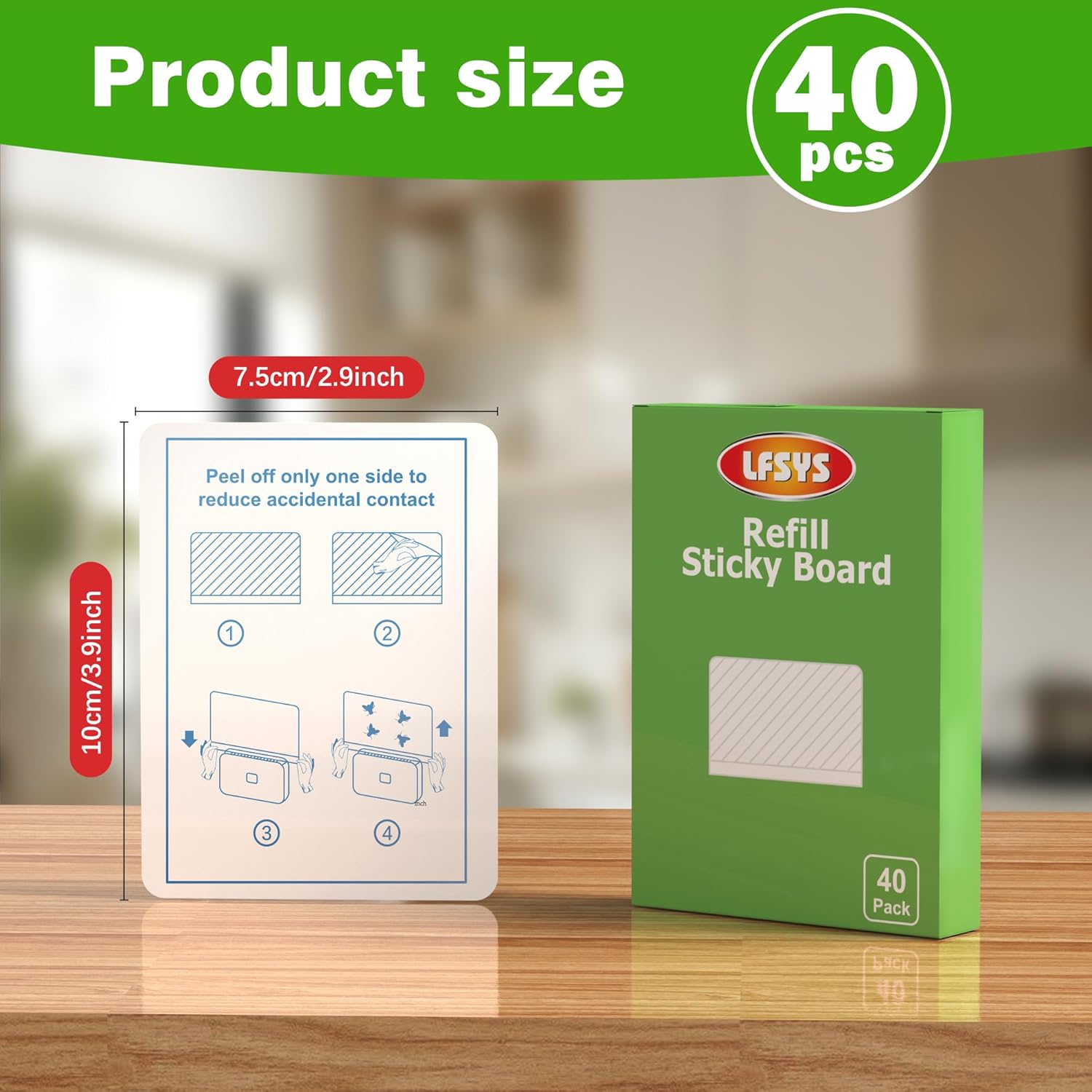 - Each pack contains 40 refill sticky card for LFSYS Cube Plug in Fly Trap