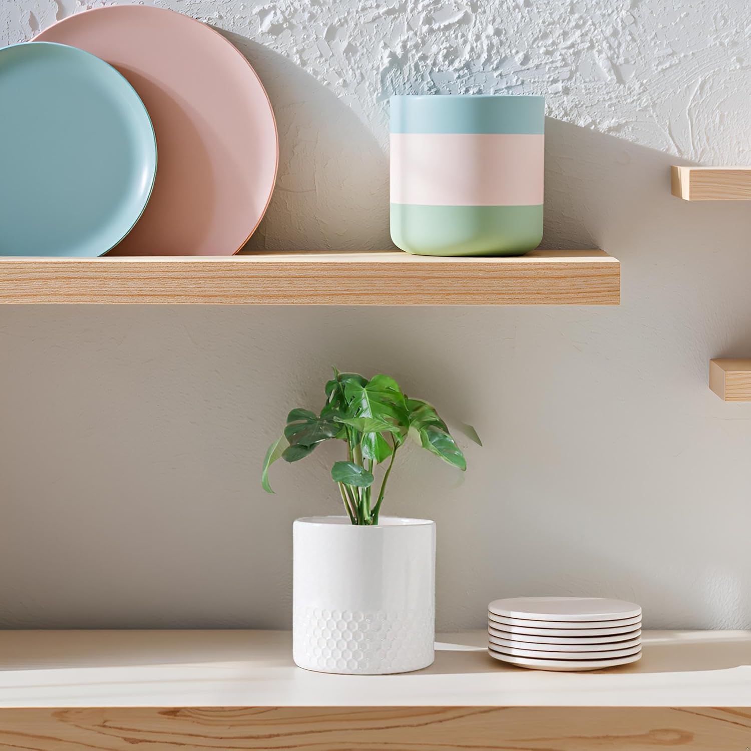 Docrin Ceramic Planters Indoor, 8 Inch Plant Pots with Drainage Holes for Home/Office - White Honeycomb