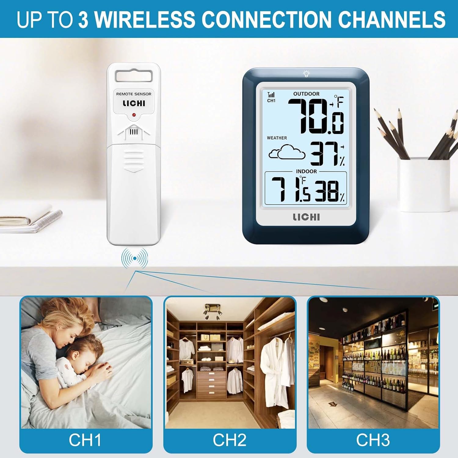 - Easy to set up: Easily set up and install this indoor and outdoor wireless thermometer (indoor thermometer: 3 AAA batteries, not included; remote control: 2 AA batteries, not included). A household thermometer can accommodate up to 3 sensors (packaged with 1 sensor) to help you monitor the location of your greatest concern