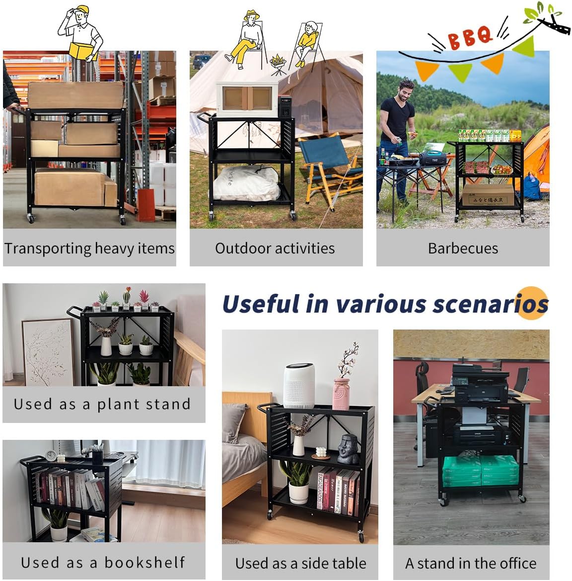 - 【Foldable & Portable】 Folding service cart saves space and folds flat when not in use, easy to store in any garage or workshop.