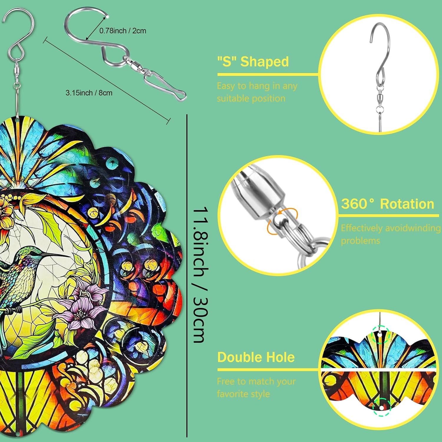 - Premium Quality and Durability:Crafted from high-grade stainless steel, this wind spinner is designed to withstand the elements. The hummingbird design is laser-cut with precision and coated with a UV-resistant, anti-fade finish, ensuring long-lasting vibrancy and durability even in harsh weather.