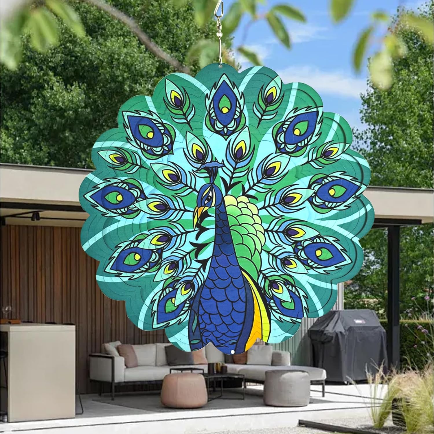- Striking Peacock Design:Add a touch of majestic beauty to your outdoor space with our 12-inch wind spinner, featuring a gaudy, lifelike peacock design with a brightly colored open-screen pattern. This eye-catching garden decoration showcases the vibrant and elaborate plumage of a peacock, making it a stunning focal point for any yard, patio, or garden.