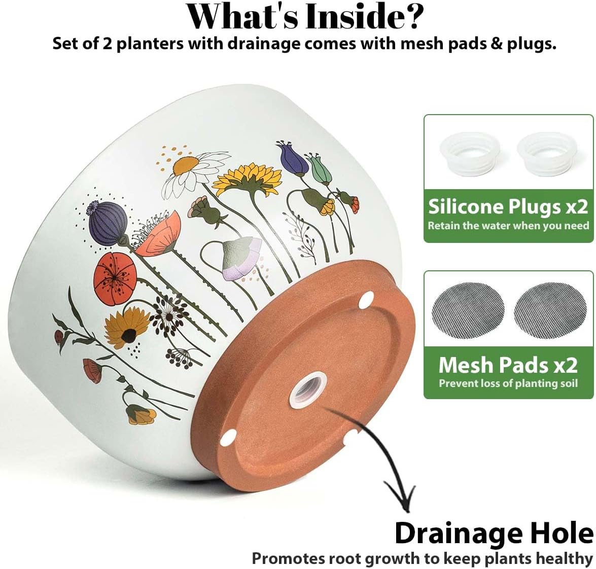 - Drainage Hole & Plug & Mesh Pad - Each planter has a drainage hole, putting the mesh pad at the bottom will isolate the water. The silicone plug could retain the water. (Plants are NOT included.)
