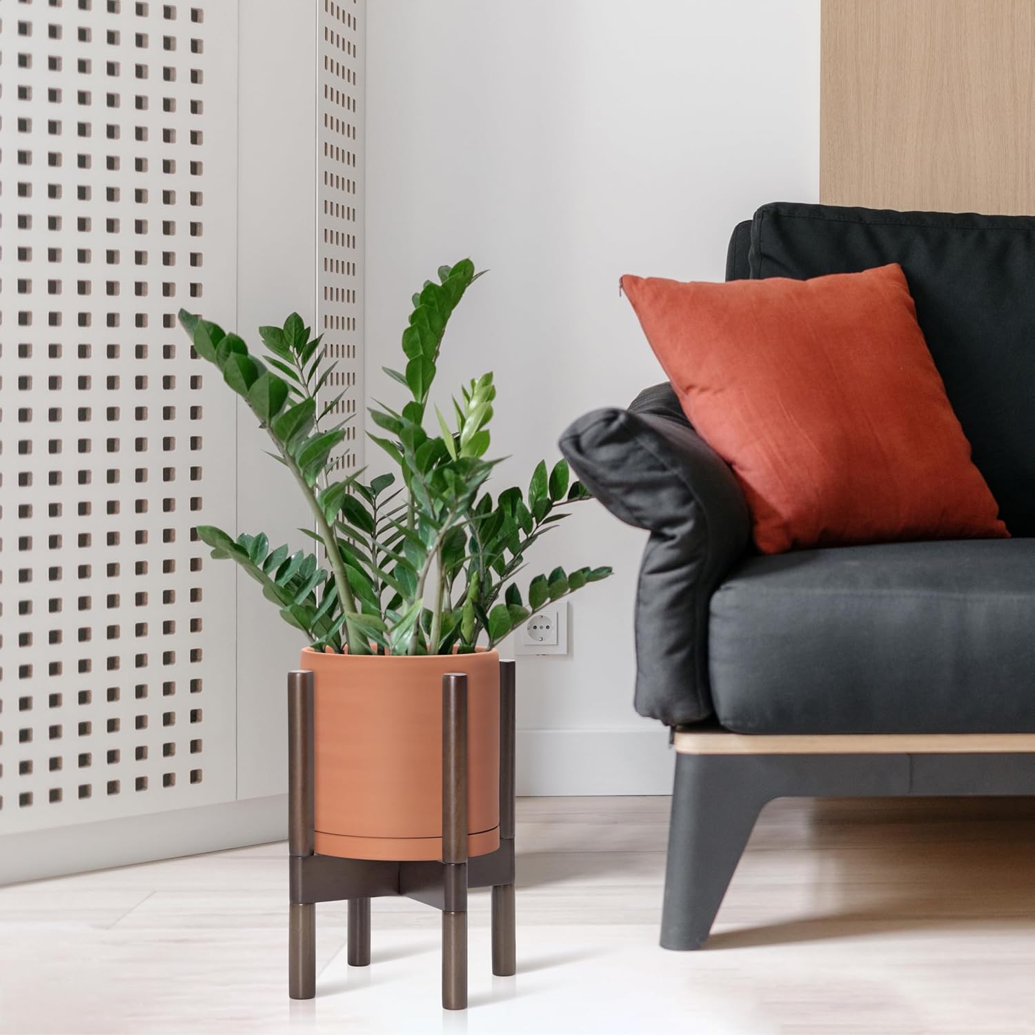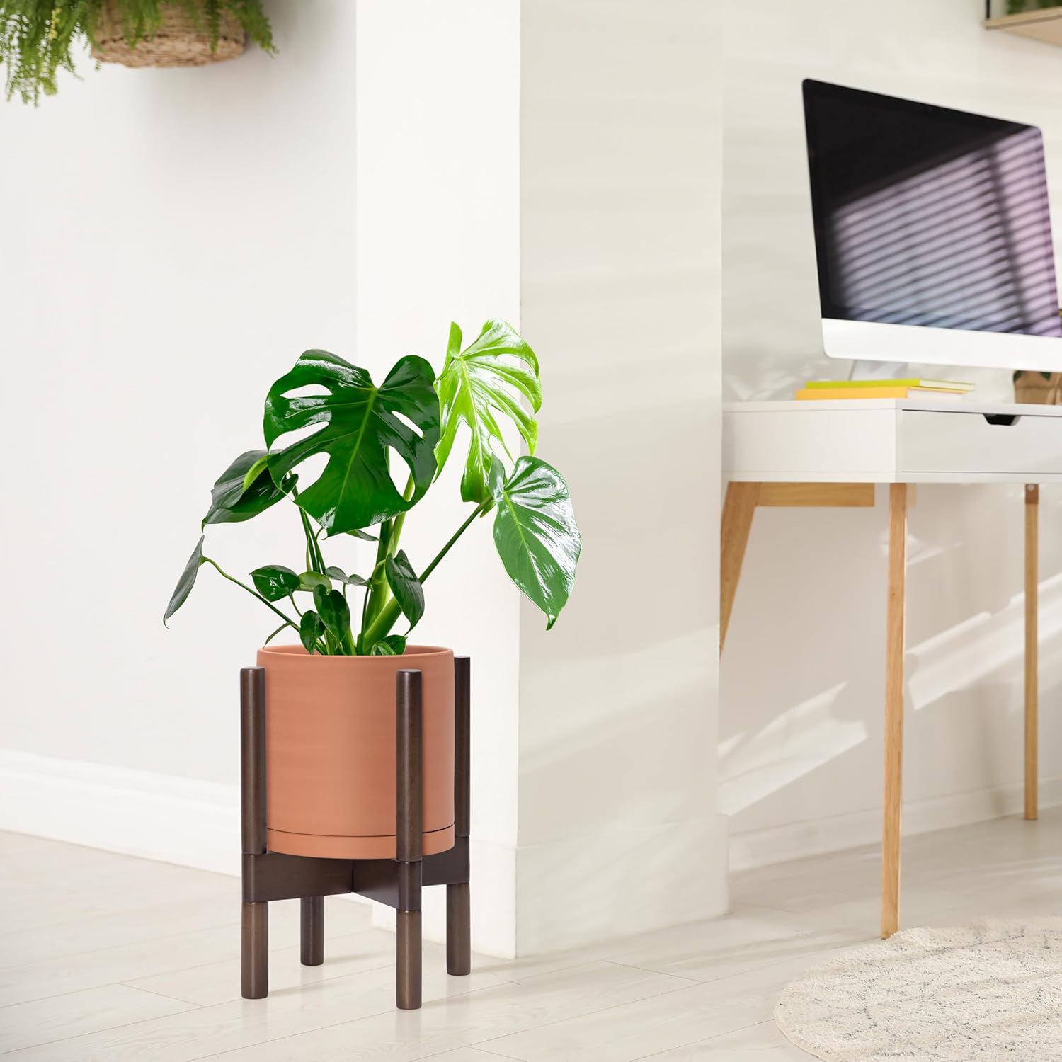 - A Complete Set: Mid-century terracotta planter, combined with a sculptural, solid wood stand that match perfectly together and looks great in anywhere.