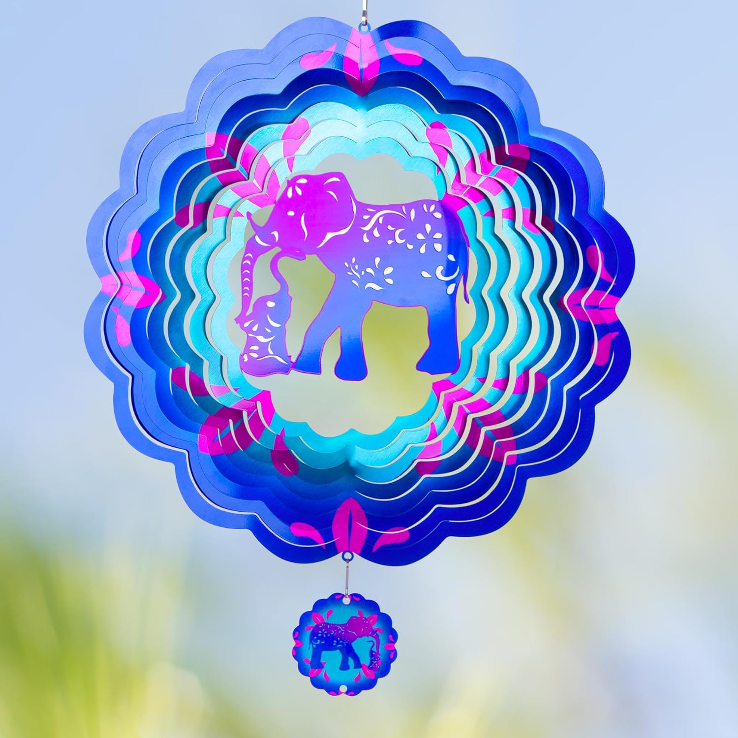 12 inch Elephant 3D Stainless Steel Wind Spinners, Hanging Garden Spinner Kinetic Art Garden Decorations, Reflective Wind Sculpture for Indoor/Outdoor Decor