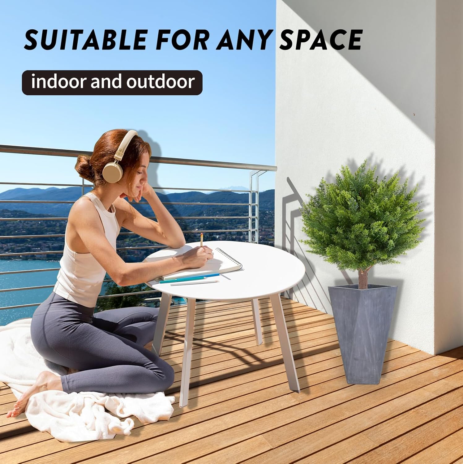 - ăWidely used, perfect decorationăArtificial plants for outdoors does not need to consider environmental factors, and can be well used to decorate indoors and outdoors, in front of doors, front porches, balconies, pavilions, gardens and offices, etc., bringing a vibrant natural atmosphere to your life.