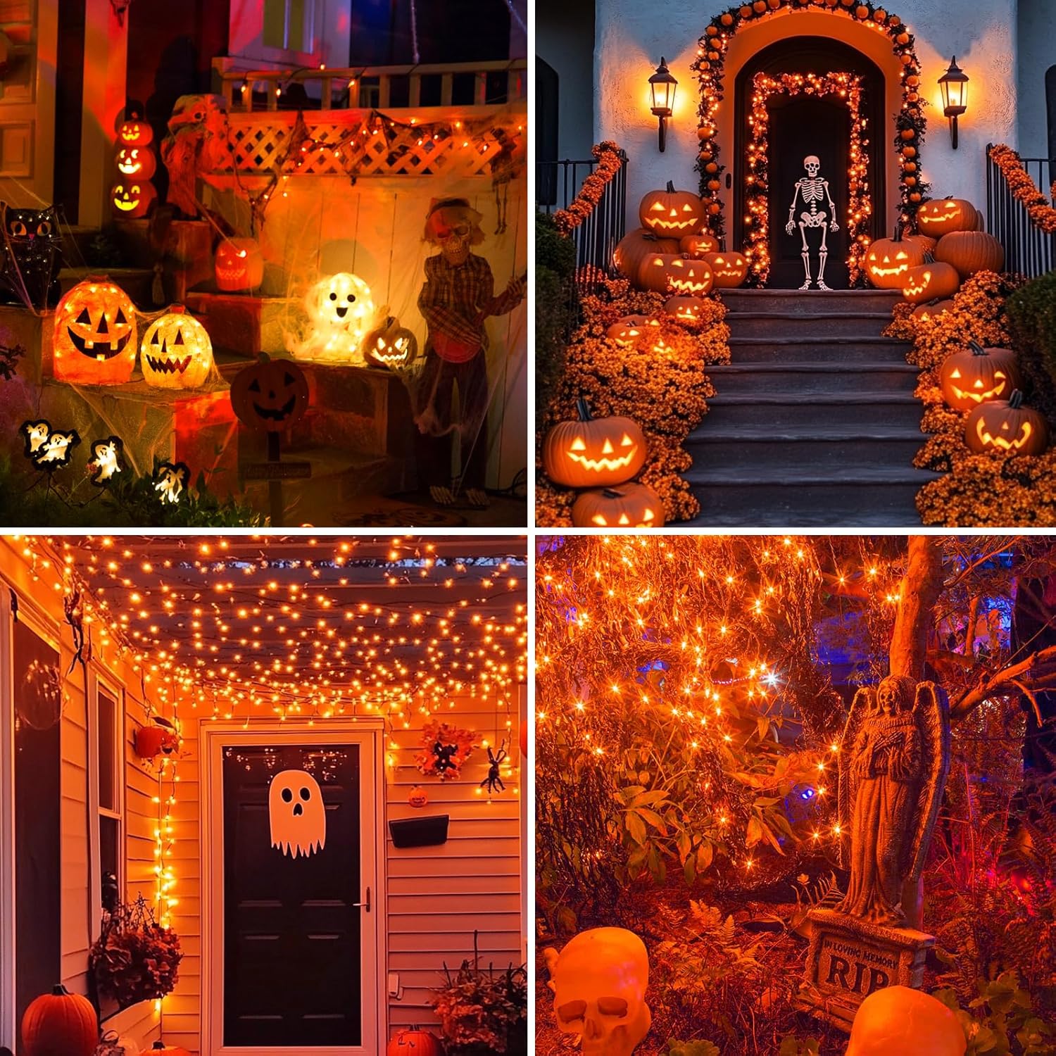 kolpop Orange Solar Fairy Lights Outdoor Waterproof, 3 Pack 33FT 80LED Solar Powered String Light, 8 Modes Copper Wire Solar Twinkle Lighting for Halloween Tree Garden Yard Outside