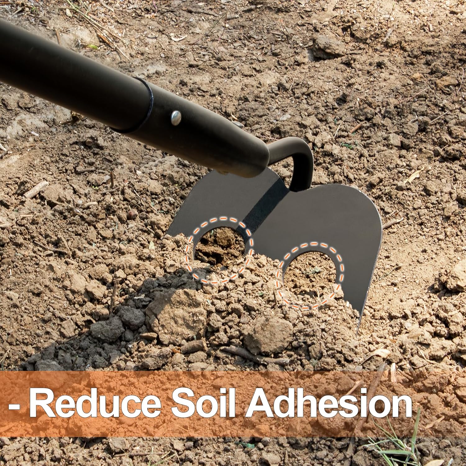 - Innovative Design: Featuring a unique perforated design, the garden hoe for weeding head effectively prevents sticky or moist soil from clinging, reducing resistance and enhancing smooth operation. It also helps distribute soil more evenly during tilling, significantly improving gardening efficiency.