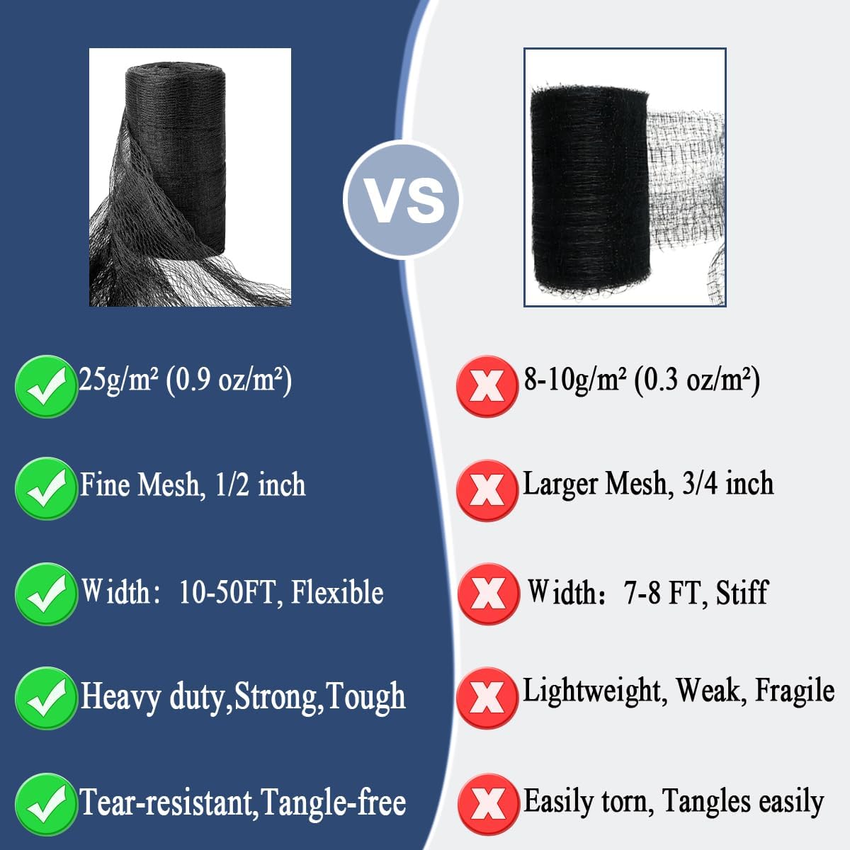 Woven Bird Netting 10X50 FT, 1/2" Mesh, Strong Bird Net Protect Fruit Trees, Blueberry, Vegetables, Strawberry Plants, Garden Netting Pest Barrier, Against Deer, Squirres, Small Critters