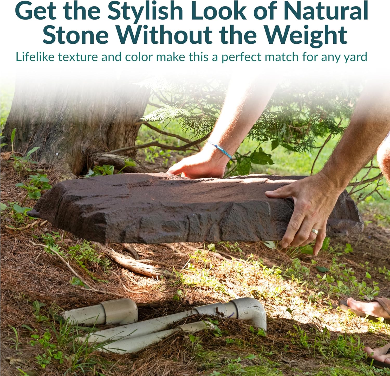 - DESIGNED TO CAMOUFLAGE: These short decorative rock covers feature a durable polyresin construction with a neutral color and texture. The material withstands the elements, while the lifelike design and irregular edges blends naturally into any outdoor space. Each artificial rock is for decorative purposes only; do not stand or climb on it.