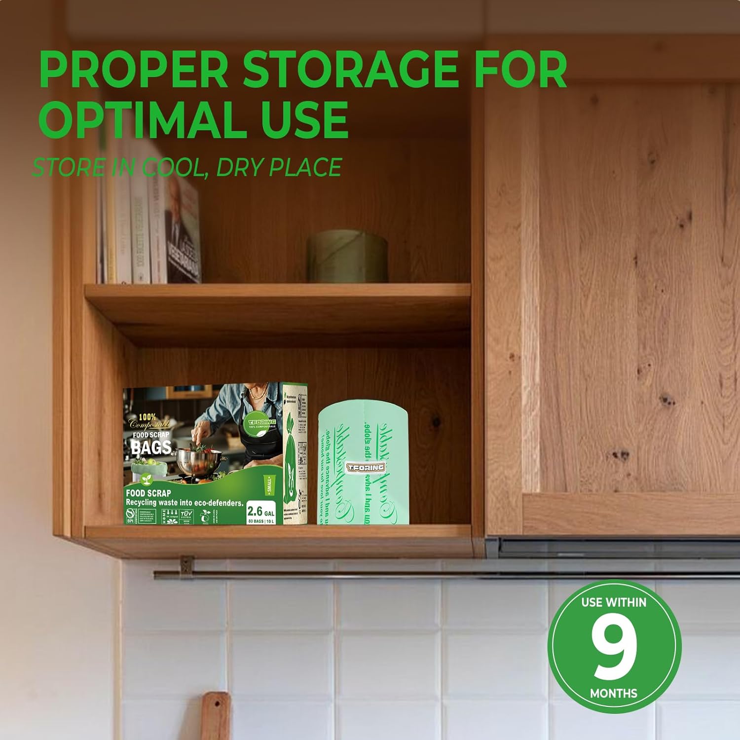 Small Compost Bags 2.6 Gallon - 80 Count 0.8 Mil Thick Compostable Trash Bags for Countertop Bin, ASTM D6400, US BPI, CMA and Europe OK compost HOME Certified