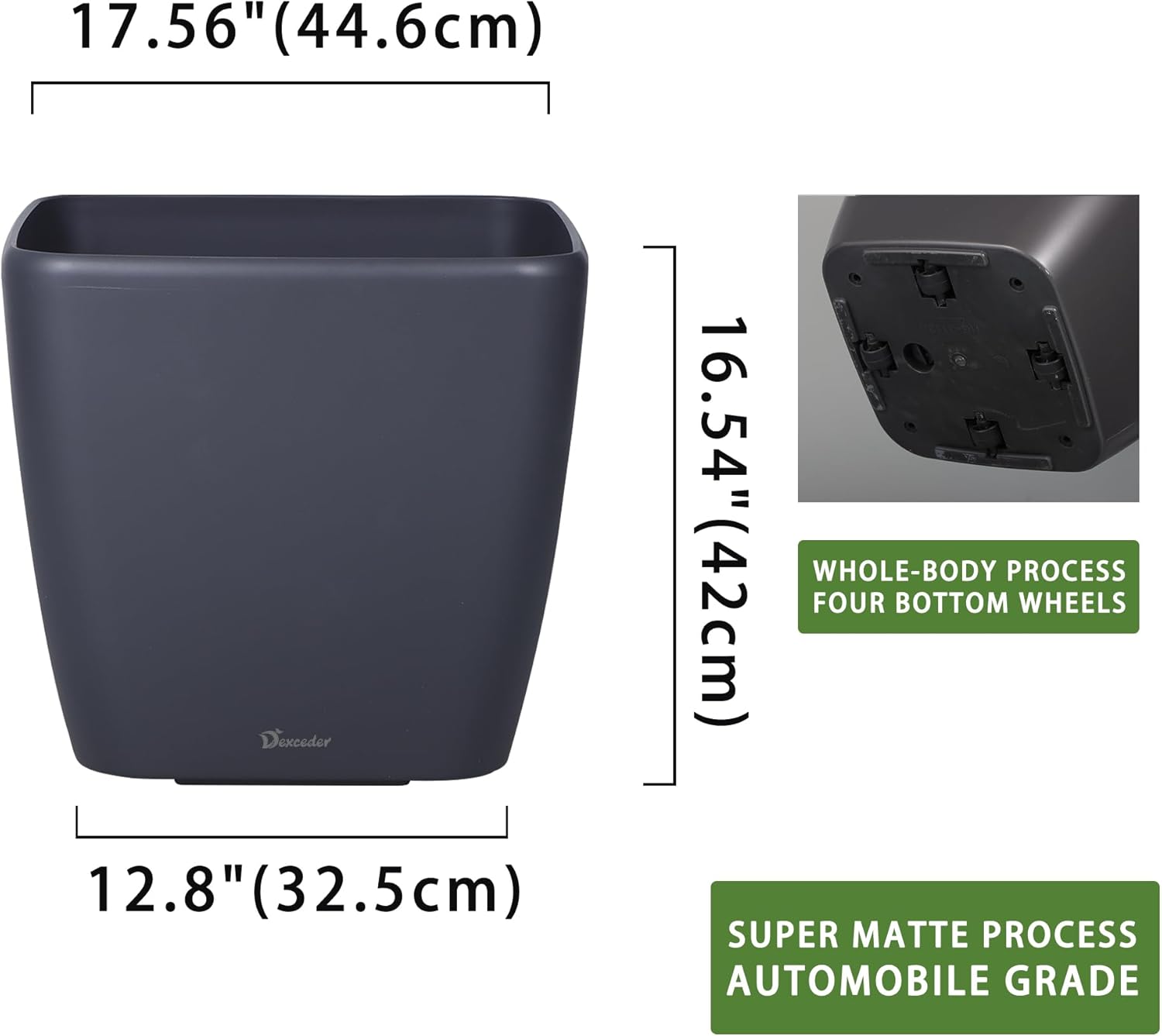 Dexceder 18x17 Self Watering Planter with Wheels Indoor Outdoor, Inner Mat Design, Thickened Large Floor Standing Flower Plant Pot with Water Level Indicator (Slate Gray Matte)