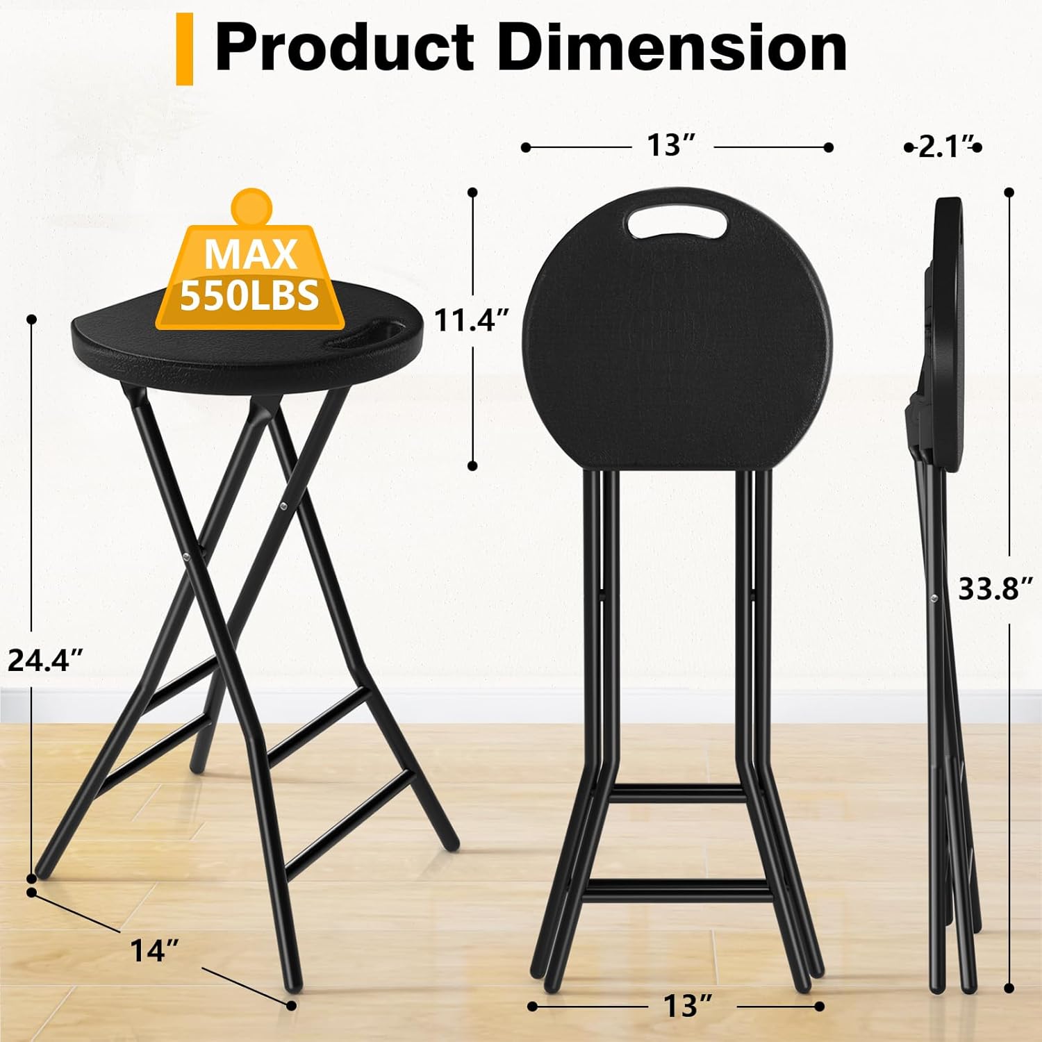 TAVR Furniture Portable Folding Chair with Handle, Heavy Duty Round Fold Stool Chair with 550lbs Capacity for Adults, 24 Inch Foldable Stool for Dorm, Kitchen, Vanity, Church and Outdoor use