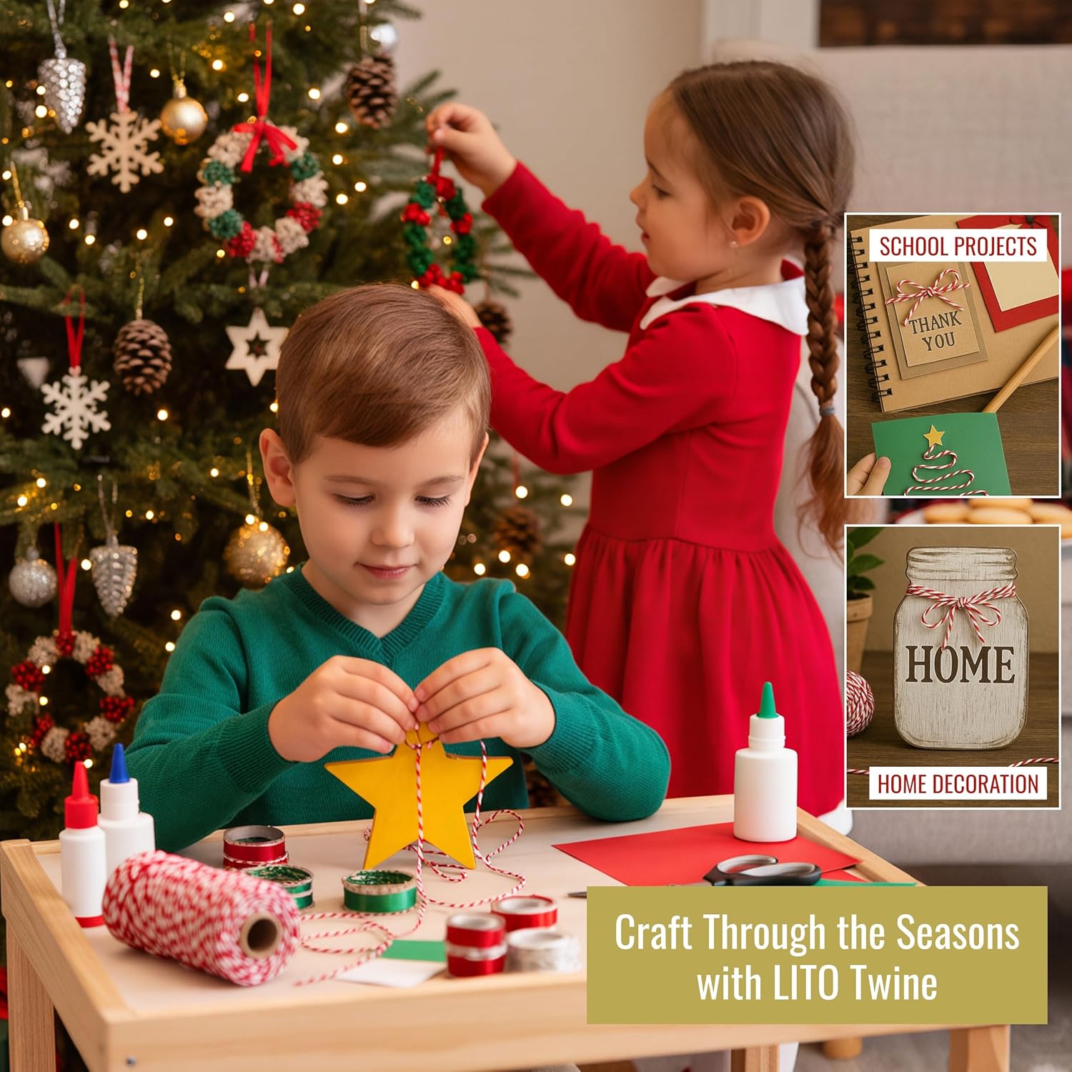 Red and White Organic Twine Cotton String - 200 Feet Wrapping, Baking, Butcher, Crafts, DIY Projects, Easter, Christmas