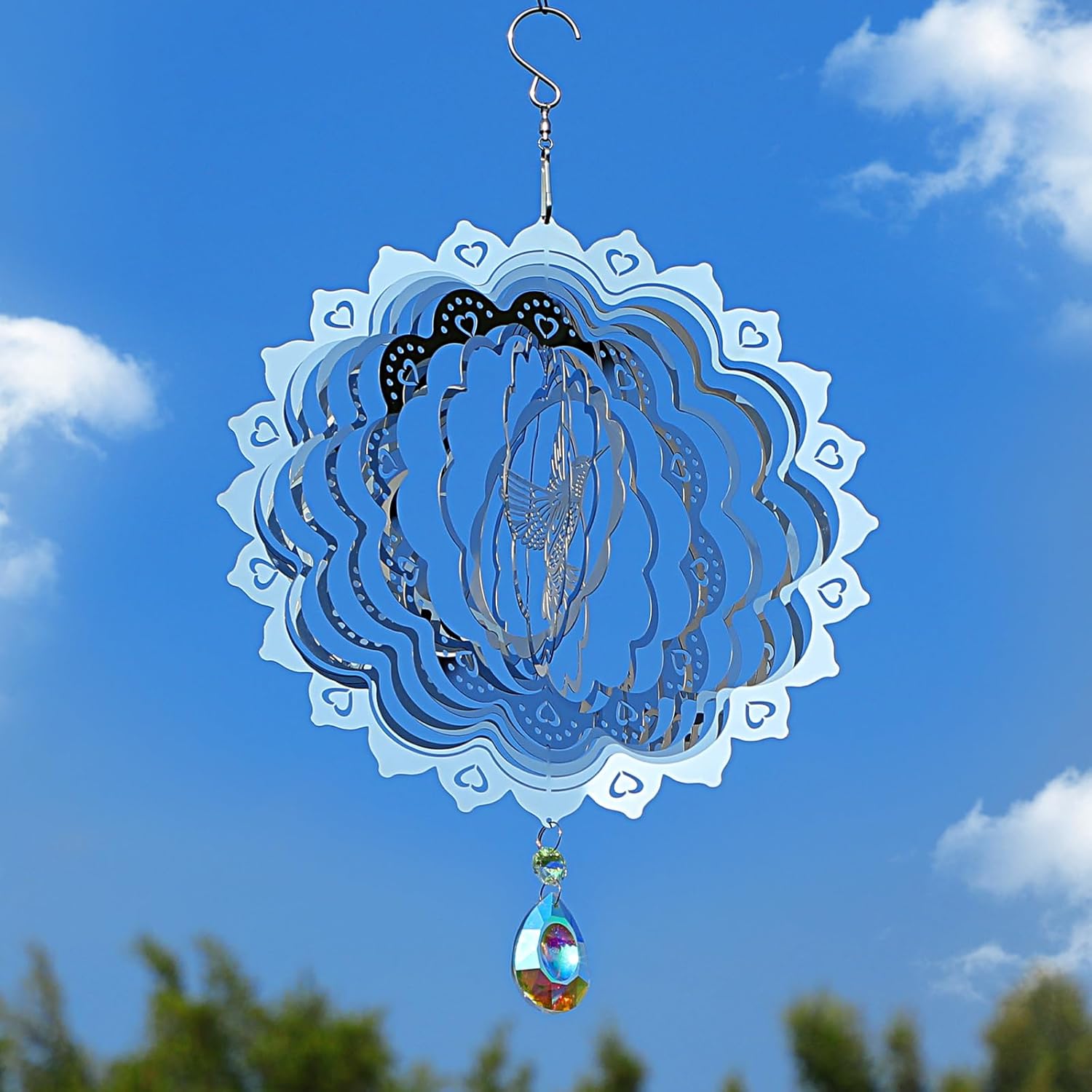 3D Wind Spinners Outdoor Flowing-Light Effect Metal Garden Decor, Highly Reflective Bird Deterrents for Outside, Mirrored Wind Sculptures to Scare Birds Away from Yard Patio Farm (Hummingbird-Silver)