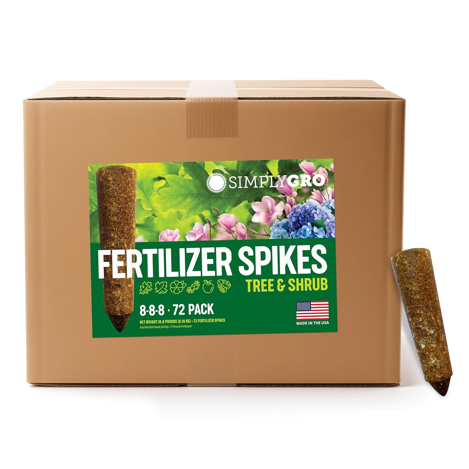 - Set It & Forget It Solution: Each 5-Inch SimplyGro Fertilizer Spike is packed with nutrition designed for feed your trees and shrubs continuously for up to 3 months. For best results apply fertilizer spikes twice a year, once in the spring when plants use a lot of energy producing leaves, blooms, and seeds; and once in the fall when they're storing energy for winter.