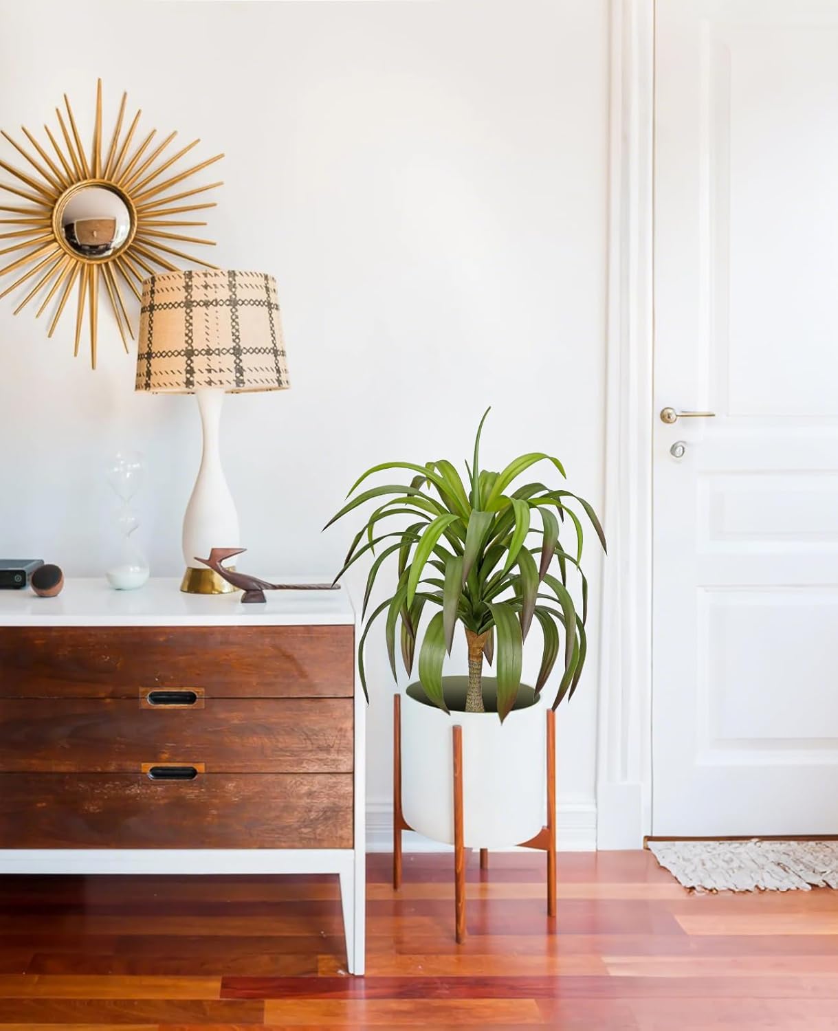 - Material: Crafted from premium plastic and silk materials, these artificial plants offer a sturdy and long-lasting decor solution, ensuring they retain their shape and color for years. The black pot is made of PP with cement poured inside for stability. Although its pot is quite basic-looking, you can easily replace it with a stylish option to upgrade the look of your fake plant.