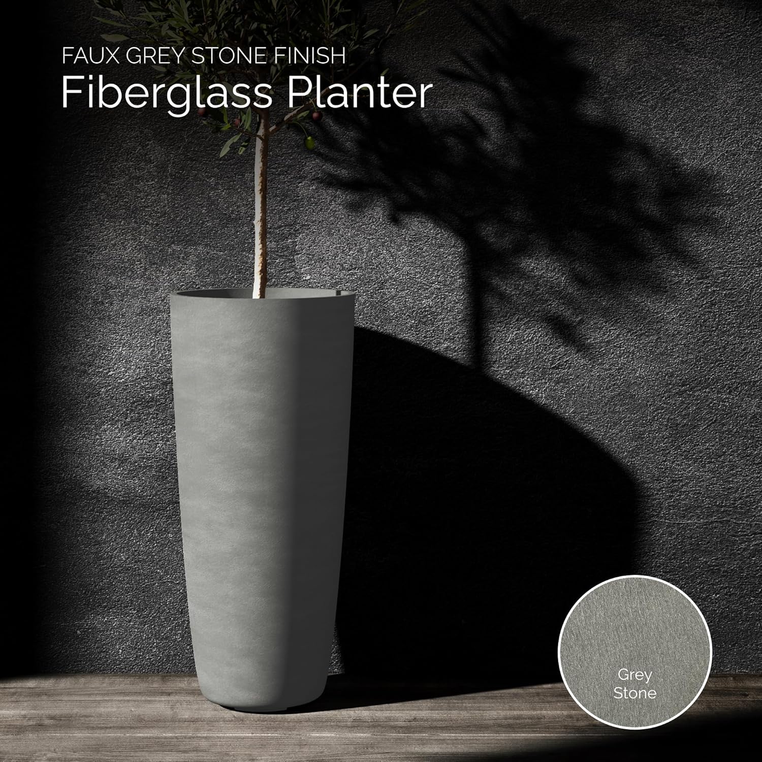 Lofto Tall Planter – Grey Stone Finish – Fiberglass Indoor/Outdoor and Weather-Resistant Large Planter (14.6" D x 30.5" H Exterior, 13.4" D x 30.3" H Interior)