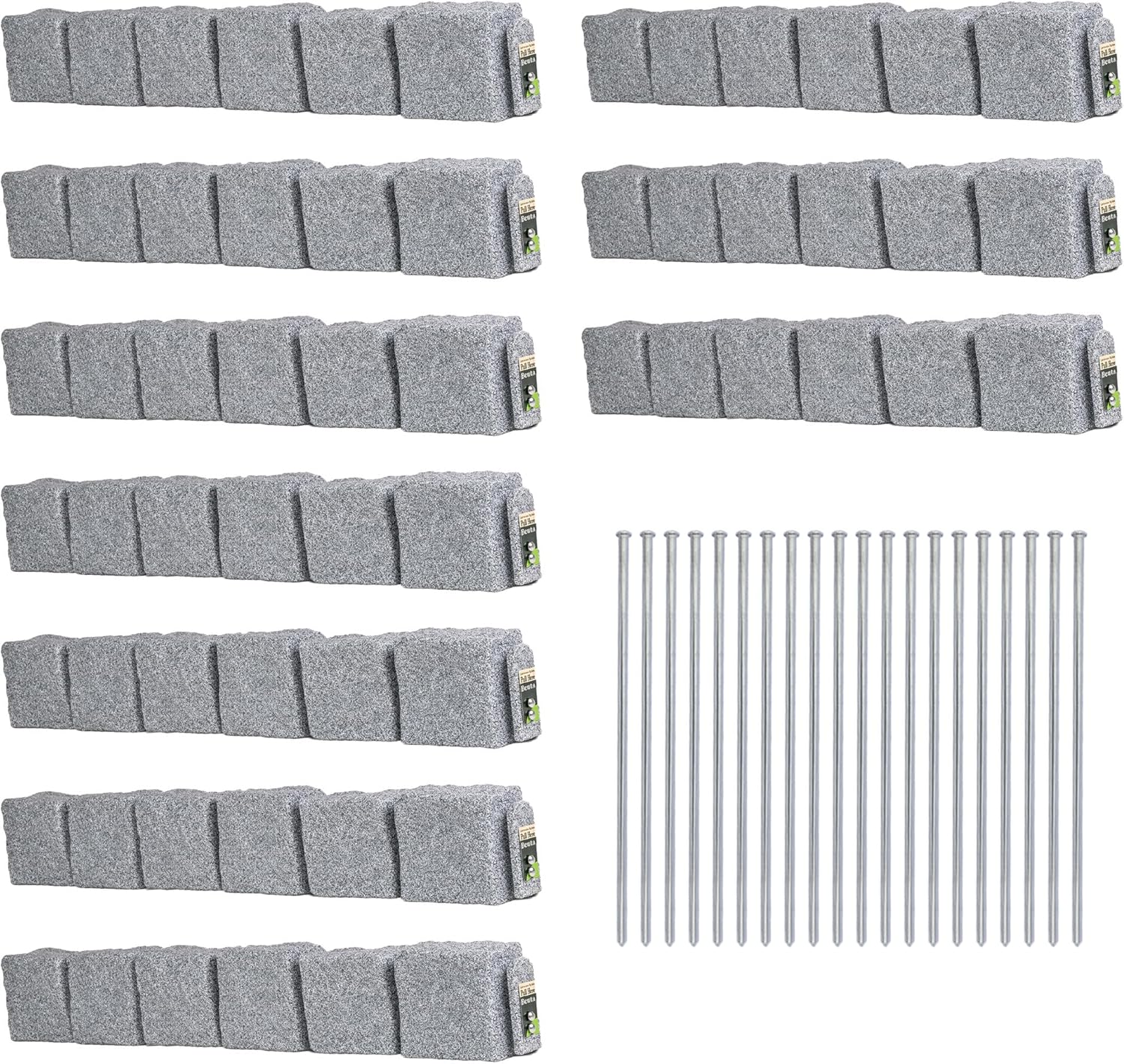 Beuta Landscape Edging | Garden Edging Border | Faux Stone Blocks for Lawn Edging, Flower Beds & Yard Edging – 10 Pack | Each Section Has 6 Blocks 48" L x 4" W x 6.5" H | 20 Spikes | Greystone