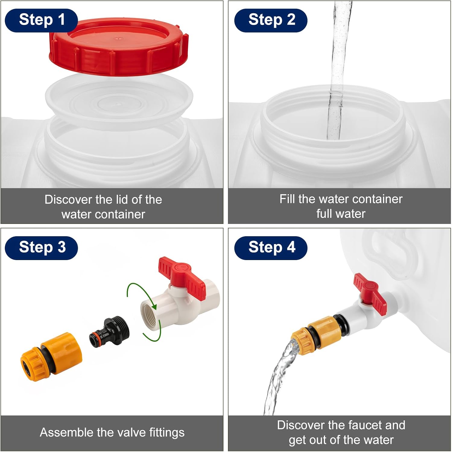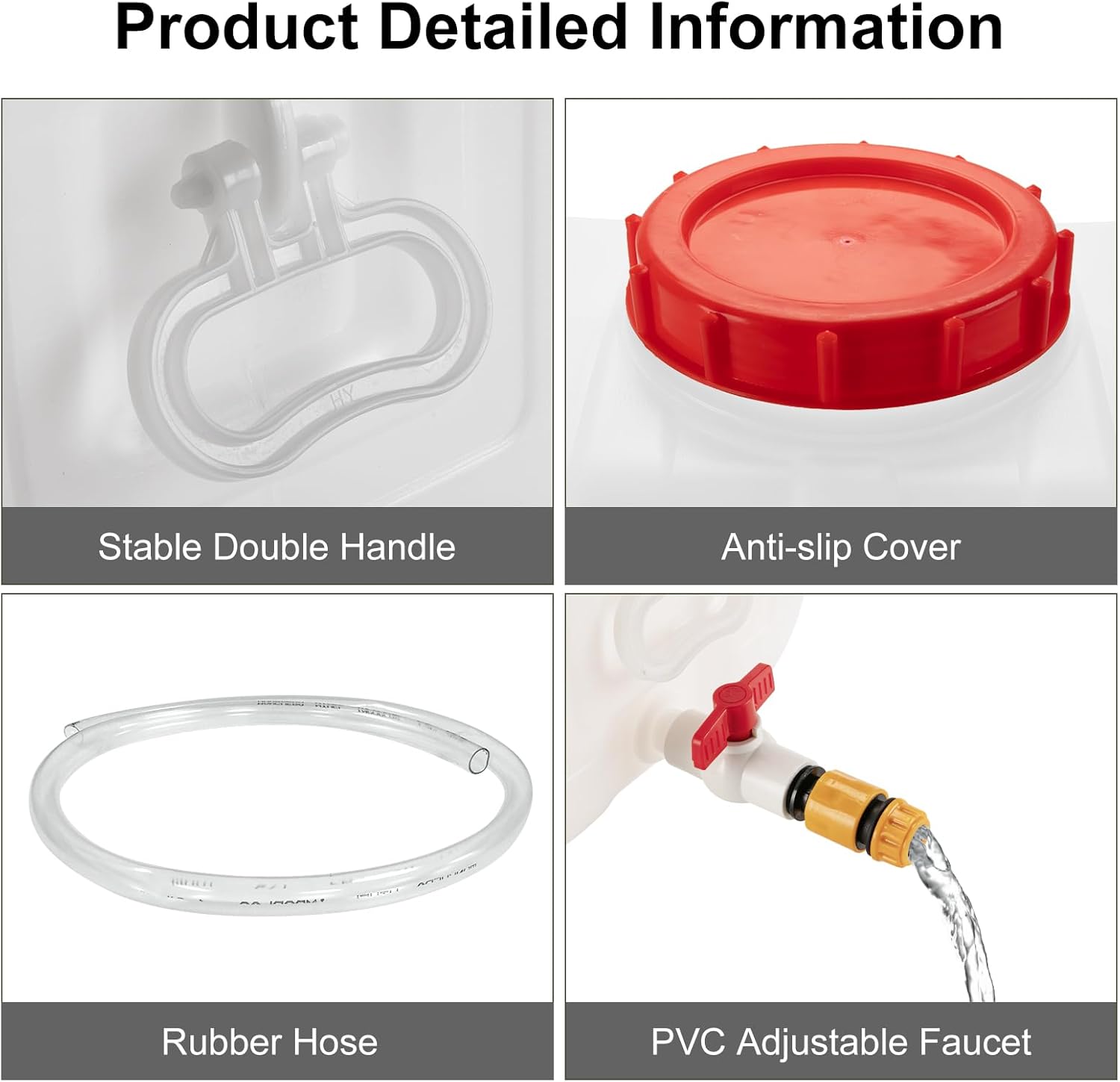 - Unique Faucet Design --- Water storage container adopts a unique faucet design, which can easily connect water and prevent leakage. Disclosure faucet can be replaced with a seal to achieve better sealing performance. The water faucet is large, and the knob can control the amount of water freely.