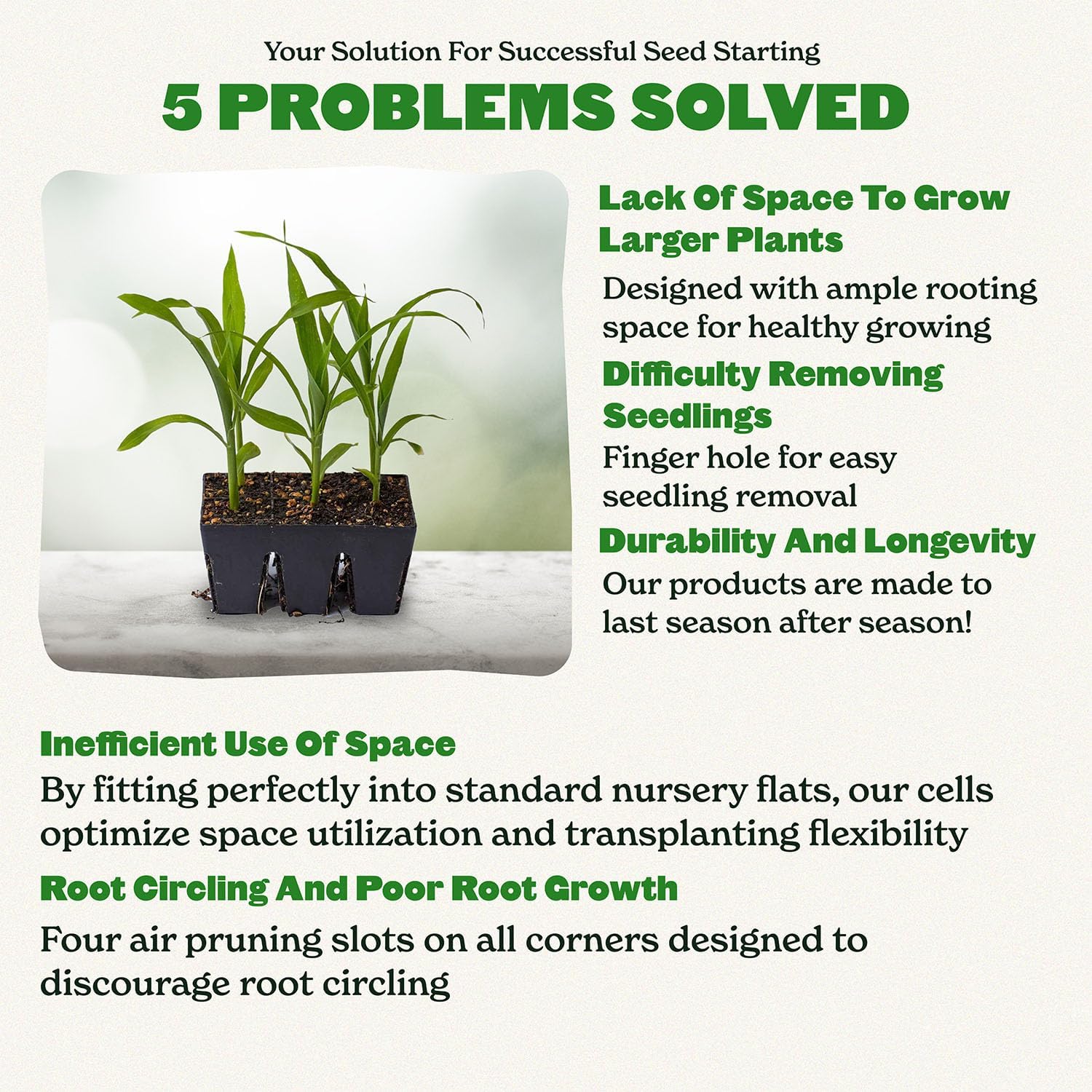 - Unbreakable & Eco-Friendly β 100% Recycled Plastic: Made from 100% recycled, UV-resistant plastic, our 6-cell trays (6-pack) are built for lifetime use. Each cell measures L 1 9/16" x W 1 9/16" x H 2 1/4", ensuring strong, reusable, and sustainable seed-starting.