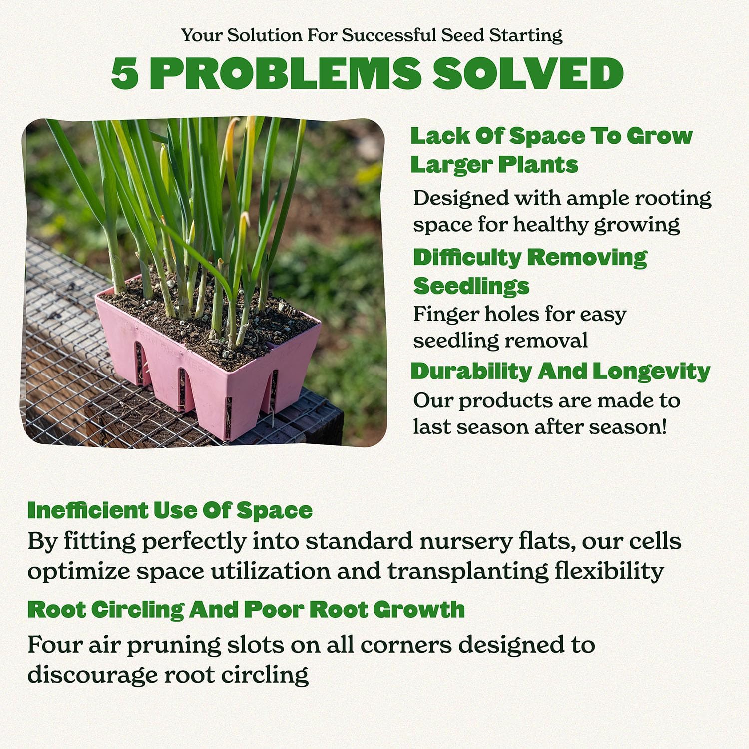 - Unbreakable & Eco-Friendly β 100% Recycled Plastic: Made from 100% recycled, UV-resistant plastic, our 6-cell trays (12-pack) are built for lifetime use. Each cell measures L 1 9/16" x W 1 9/16" x H 2 1/4", ensuring strong, reusable, and sustainable seed-starting.