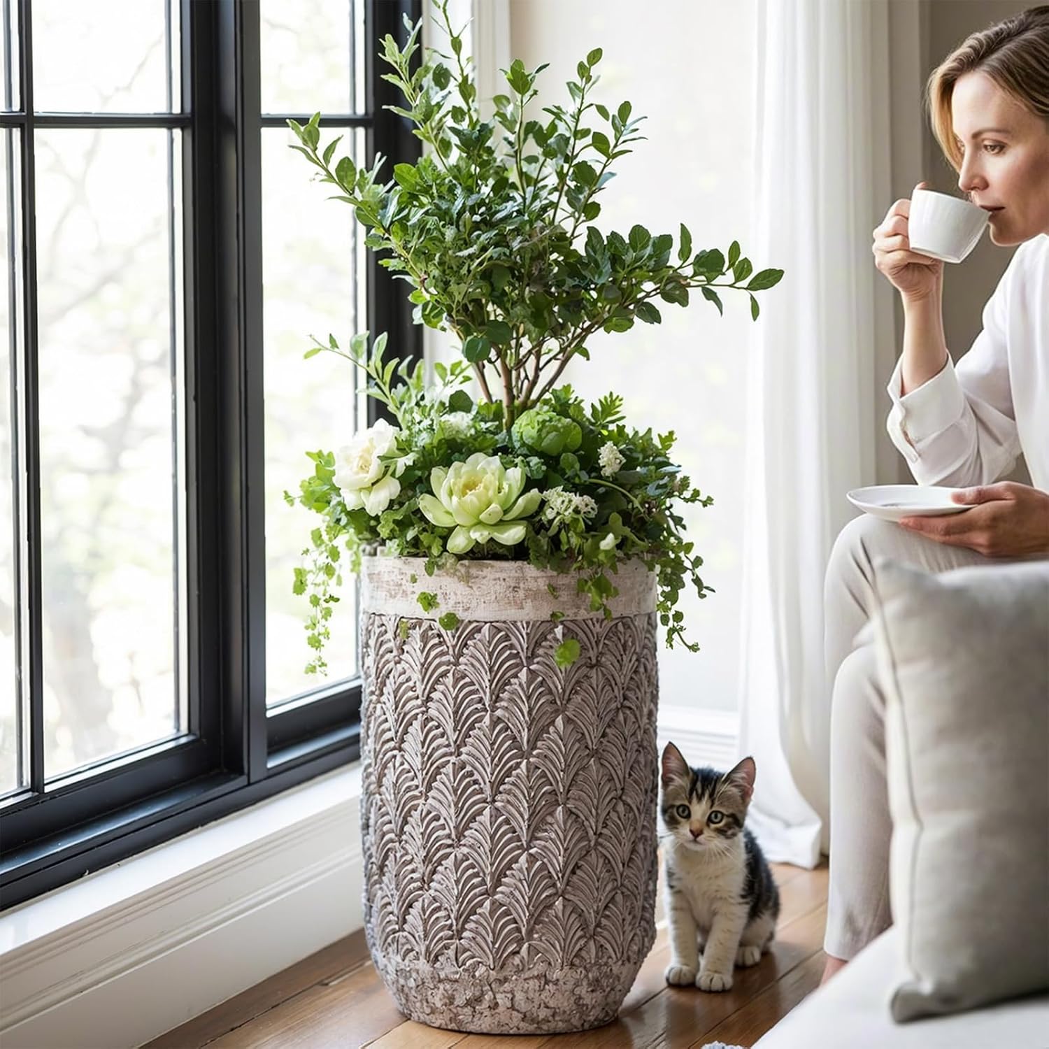 15.5 & 19 inch high Concrete Flower pots Set of 2, The planters for Outdoor Plants with Drainage Hole, Modern Family Outdoor Decor Plant pots, Indoor Plant pots for Home Decor.
