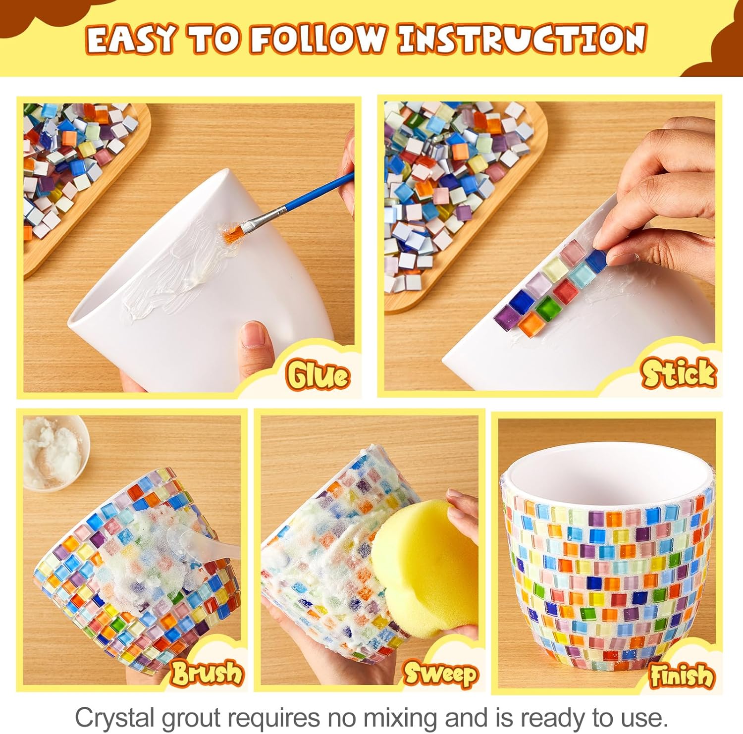 - Complete Mosaic Vase Craft Kit: everything you need to make these mosaic craft comes in the kit (grout and all) 2 vases, mosaic tiles, sponge, cream glue, scraper, distribution bowl, gap Filler, spoon, and brush! If this is your first painting, it can bring you a different painting experience