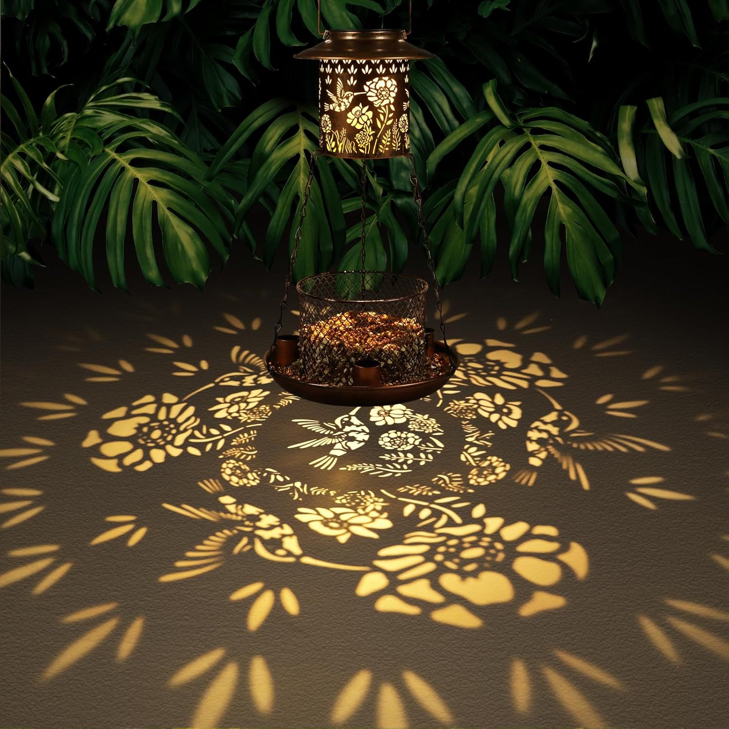 - 【Occasion】It is not only a bird feeder for outdoors hanging, but also a Solar garden lantern at night.The light shines through the hollow pattern, adding a beautiful breath, Nice present for bird lovers and Beautiful decoration for your garden or backyard.