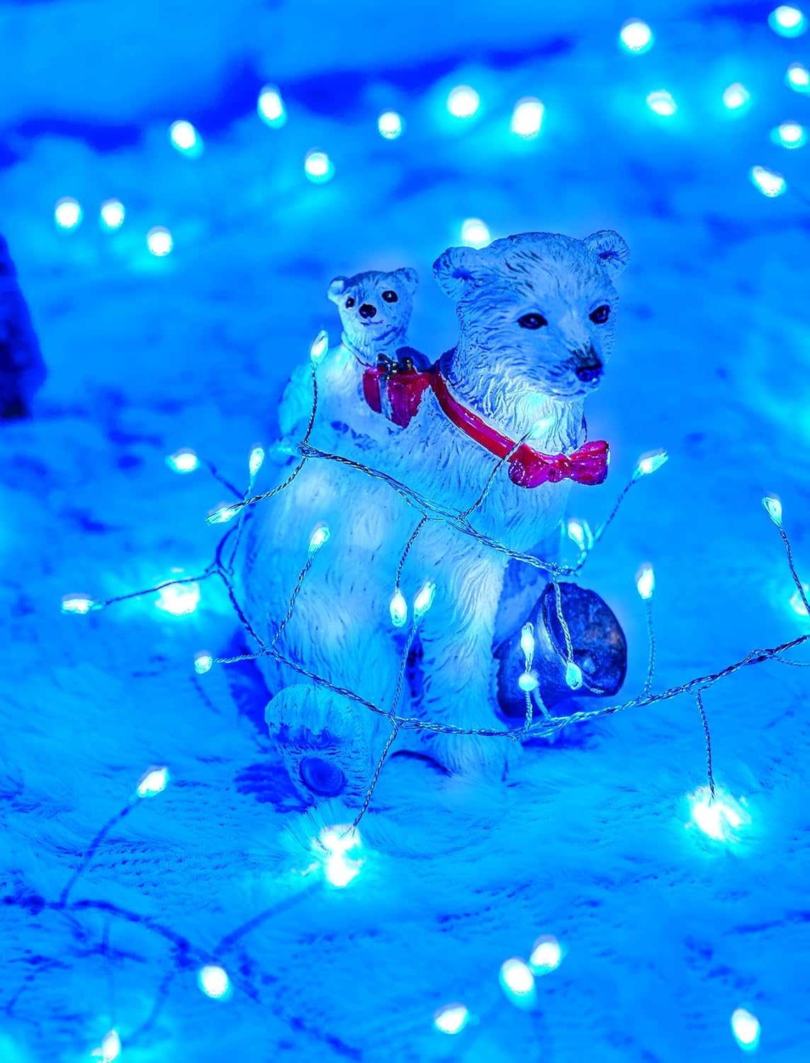- Solar Lights Outdoor - 19.6 feet outdoor tree lights with 240 bright LED lights. The solar fairy lights produce a blue glow, fit well in your porch, garden, yard, patio, balcony