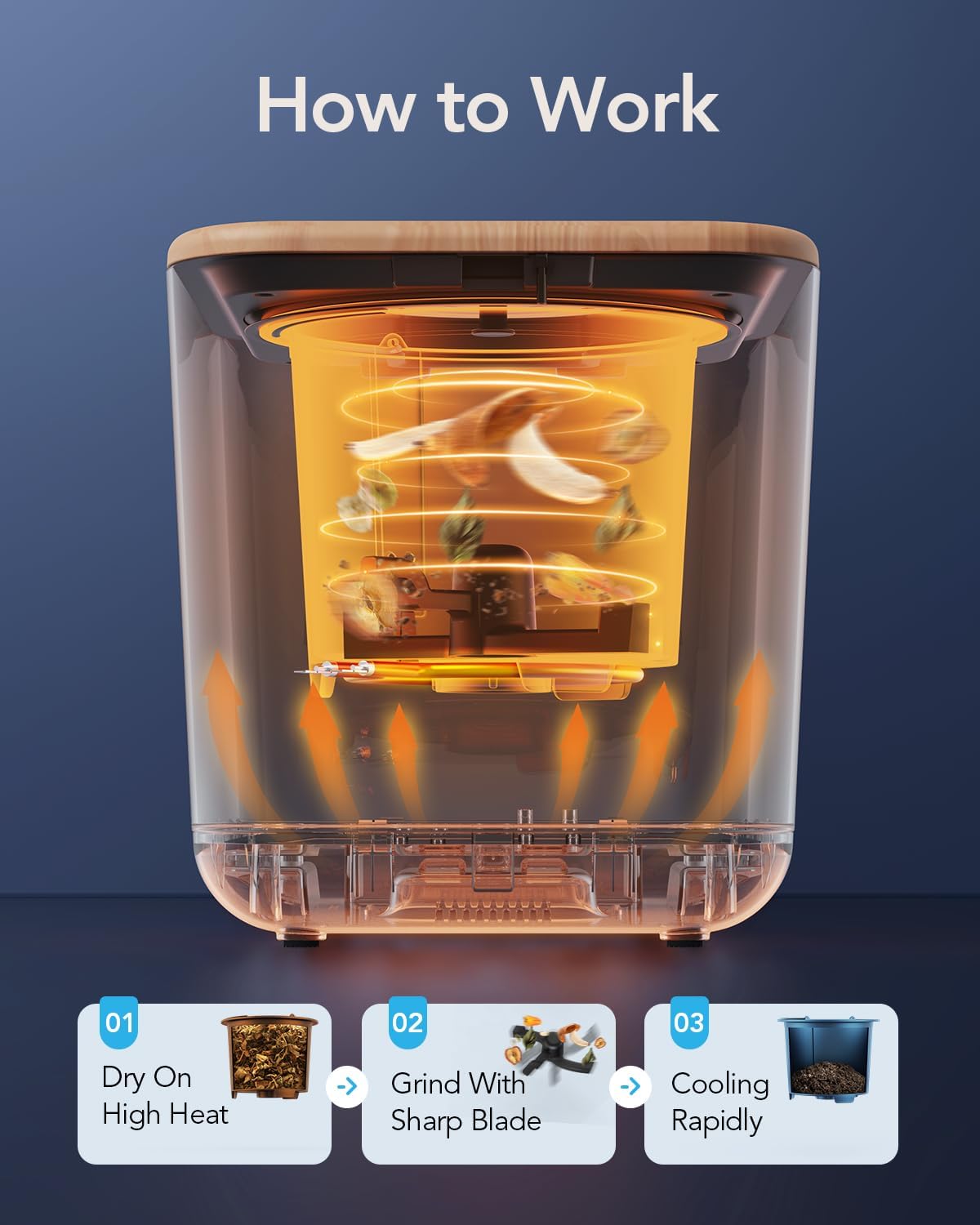- Automatic Operation: Simply load your food waste into the top compartment, and the machine will automatically process it, eliminating the need for manual composting.