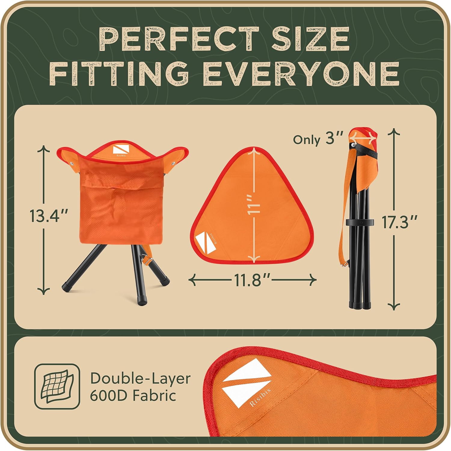 Foldable Tripod 13.4'' Stool - Ultra Portable Seat, Best for Youth+Pocket - 1 lb Camping Stool, 3 Legged Strong Steel Stool, Height: 13.4 inches (Orange)
