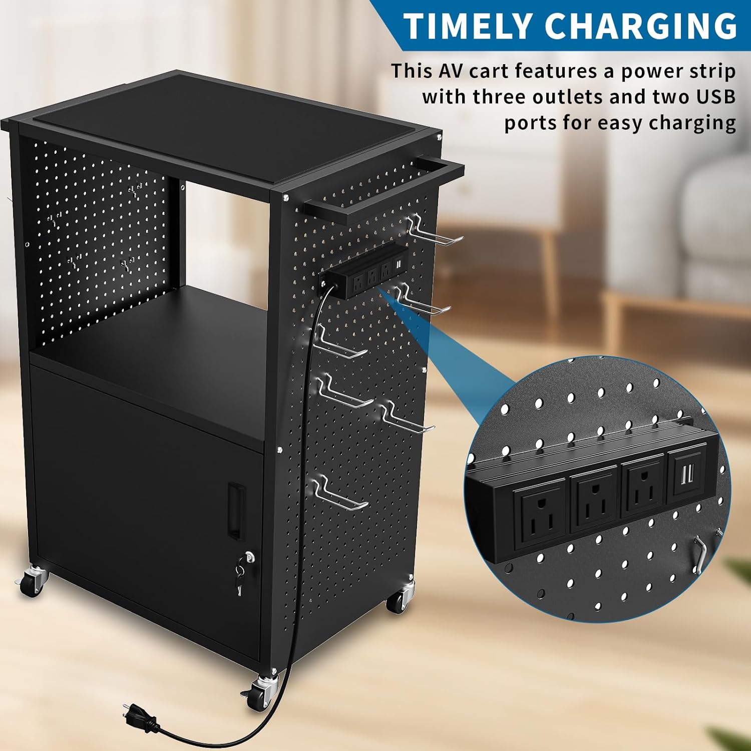 - Organized Storage with Pegboard and 12 Hooks: Equipped with side pegboards and 12 sturdy tool hooks, this AV cart makes it simple to hang small tools and accessories, keeping your workspace neat and maximizing storage efficiency.