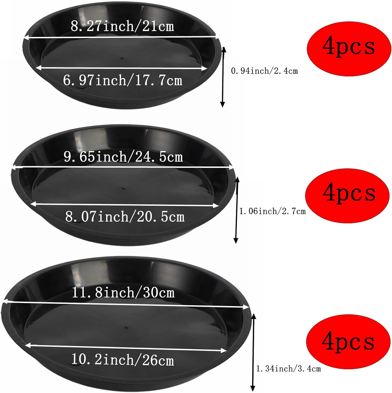- PACKAGING COMPONENTS:This package includes 4 packs of 12-inch, 4 packs of 10-inch and 4 packs of 8-inch plant water trays. It is suitable for many different uses and can meet all your needs.