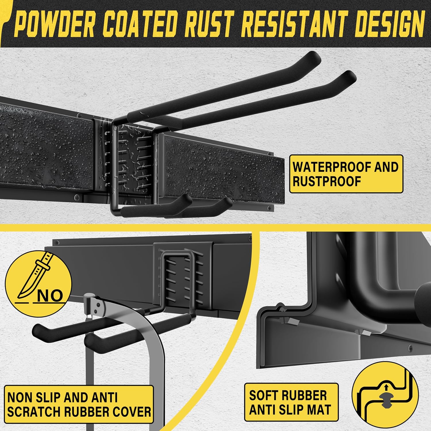 - VERSATILE TOOL RACK:Our Garage Storage System Isn't Just for Your Garage Tools;itβs Perfect for Arranging Garden Tools,Brooms,Hoses,and Even Sports Equipment Like Hockey Sticks And Ski Gear.This Multifunctional Storage Solution Maximizes Your Space.