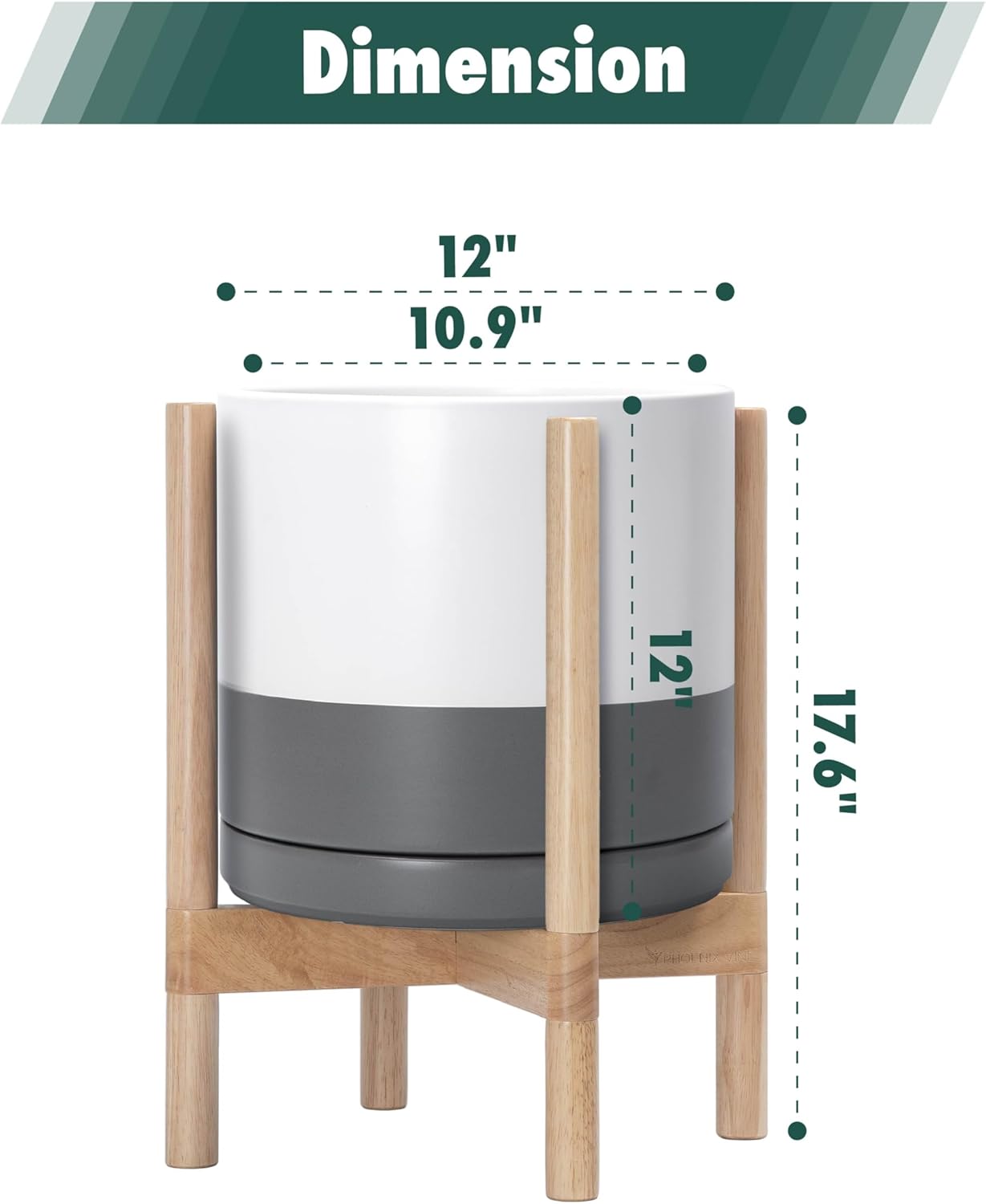 - 12 Inch Pot with Stand Set: Planter size: 11.8"Diameter x 11.8"H; pot with stand total height: 18.5 inch.