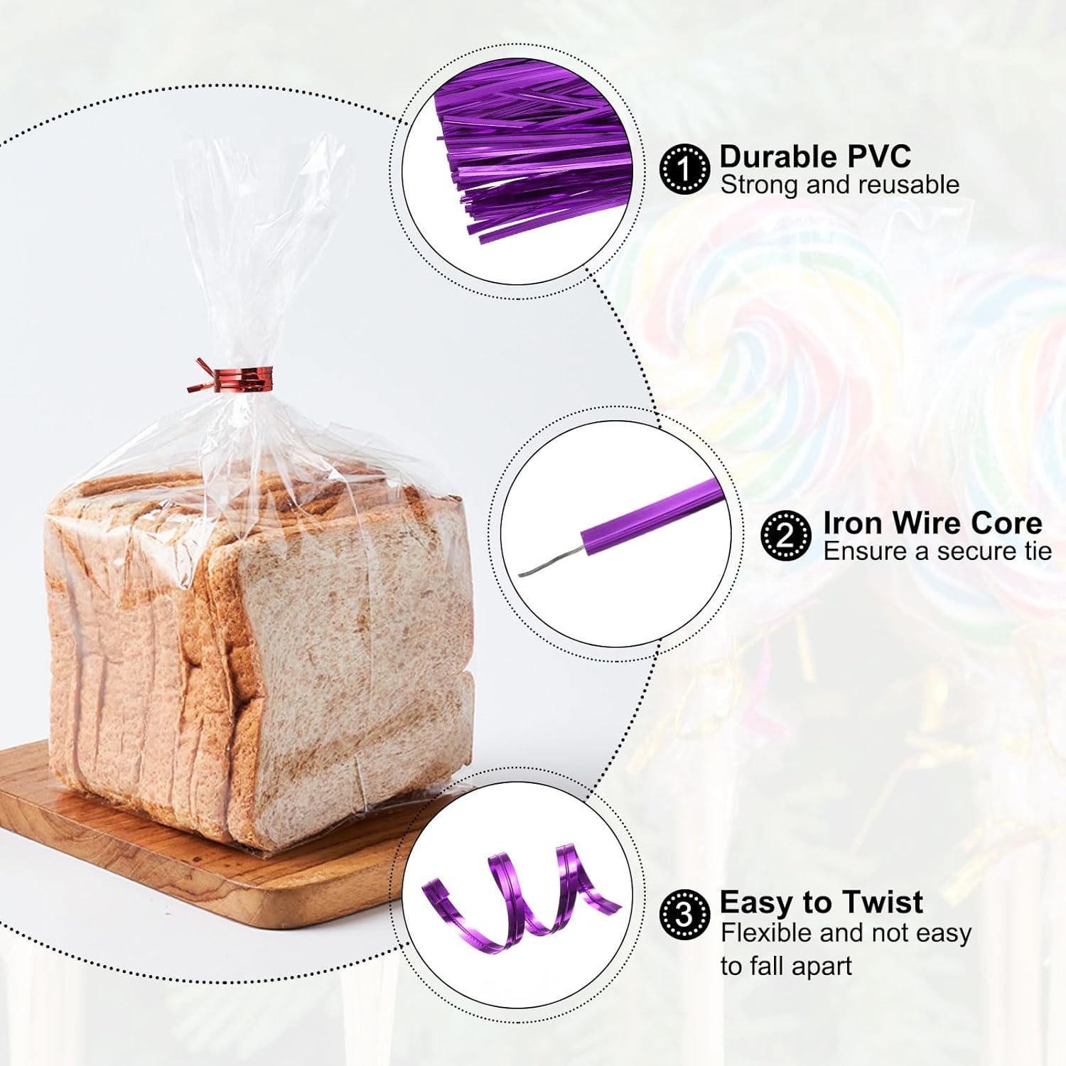 - Size - Total Size: 100 x 4mm / 4" x 0.16"(L*W), Color: Purple, Packing Content: 800pcs x Twist Ties.