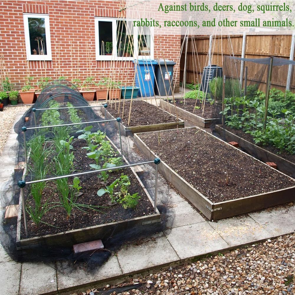 - Bird Netting for Garden: Whether you're growing blueberries, strawberries, tomatoes, cherries, vegetables, flowers, figs, or fruit trees, this anti bird netting is perfect for covering your plants. Garden bird netting protects your crops and harvest from hungry birds, deer, squirrels, rabbits, and other small animals. Do not hinder plant growth or pollination, it provides ideal protection for vineyards, orchards, family farms, and other agricultural areas.