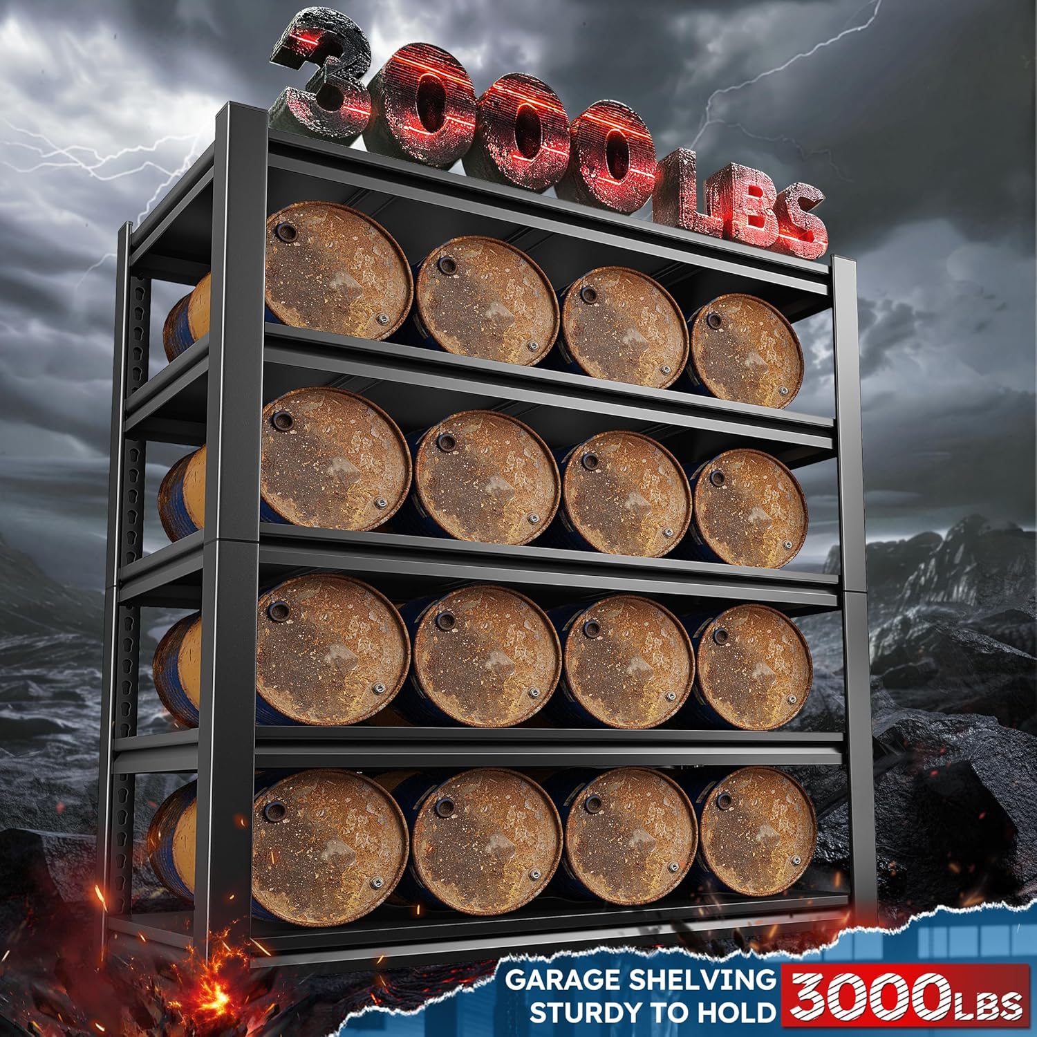 REIBII Garage Shelving 3000 LBS Storage Shelves Adjustable Heavy Duty Shelving Units and Storage Rack for Garage, Basement,2 Pack