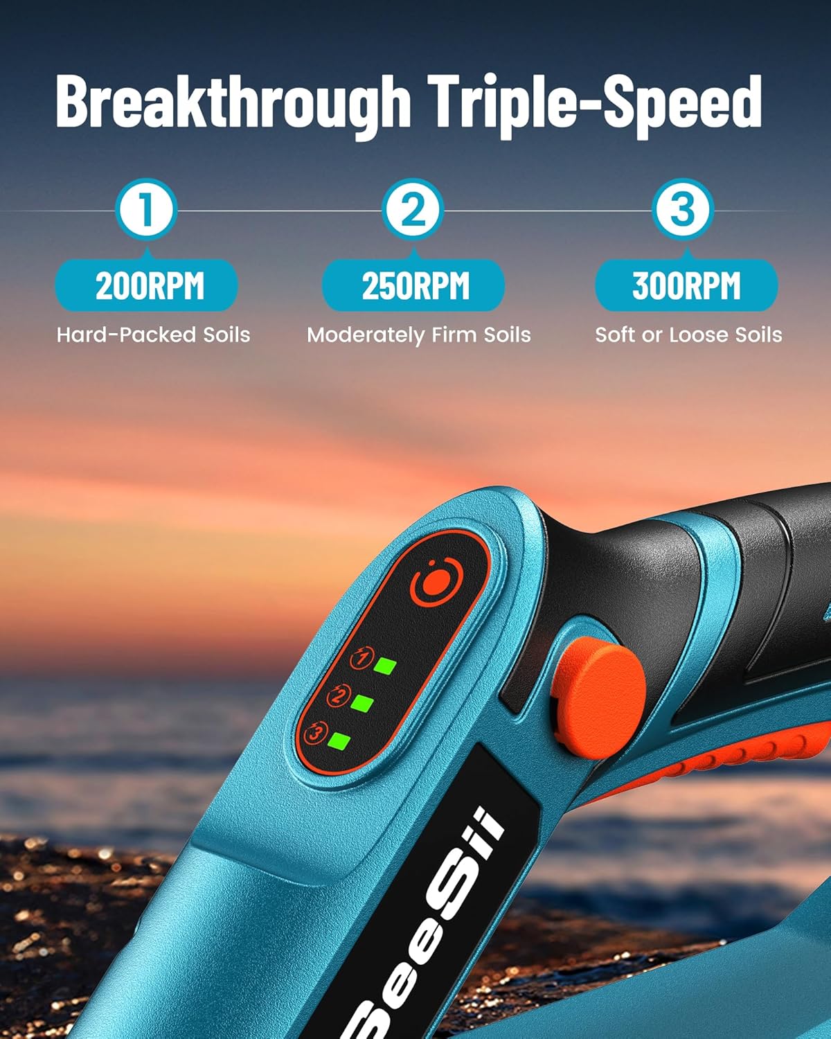 - Innovative 200 / 250 / 300 RPM: With three expertly engineered speed settings, this tiller adapts seamlessly to diverse soil conditions, ensuring maximum productivity and superior results. Whether you're tackling tough, compacted ground or working on softer terrain, this machine offers the versatility and performance you need to get the job done right. Elevate your soil preparation with unmatched efficiency and precision